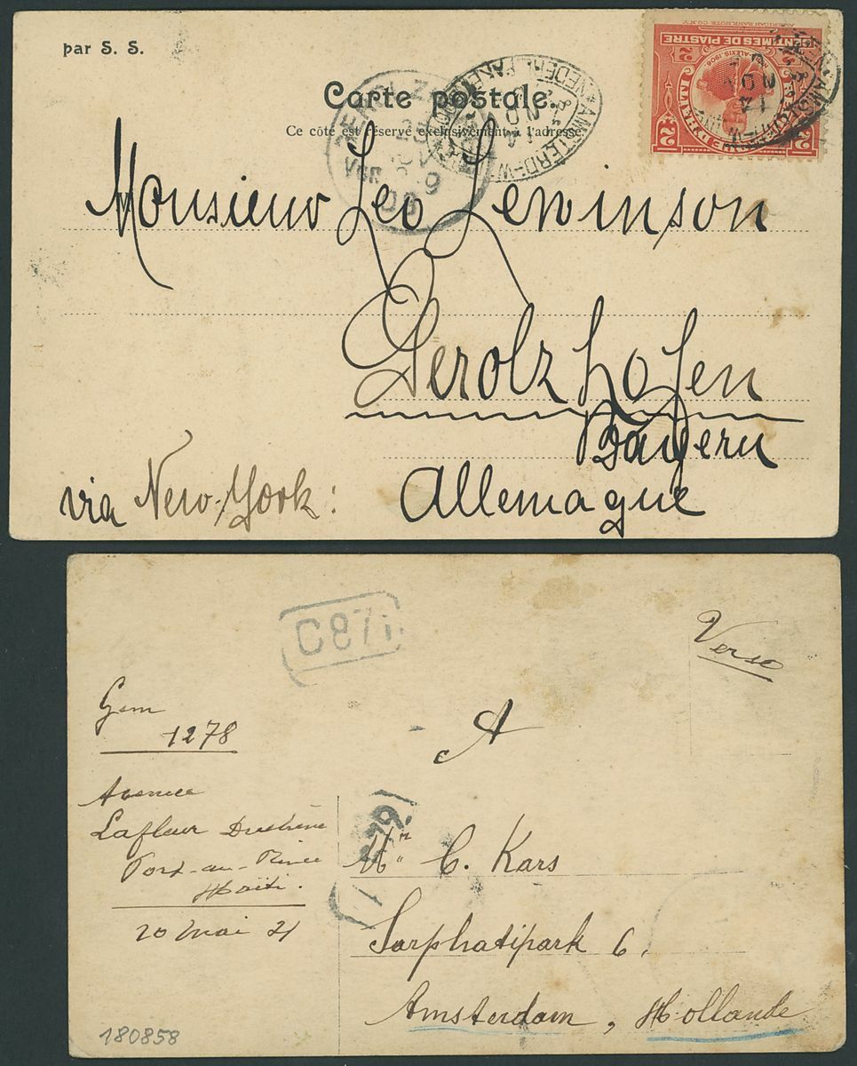 1900 3c. green on picture postcard to Germany, 1901 and 1908 picture postcards to Germany franked 3c. or 2c., each with oval "