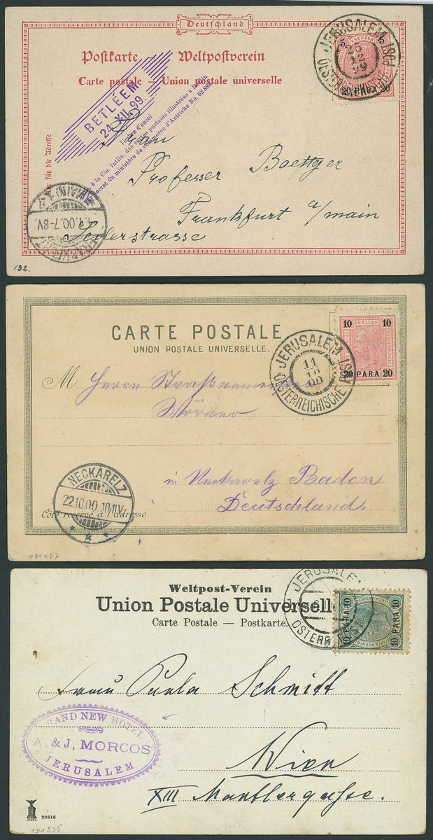 1898-1911, selection of seven postcards (mostly coloured), variously franked and addressed, markings including "