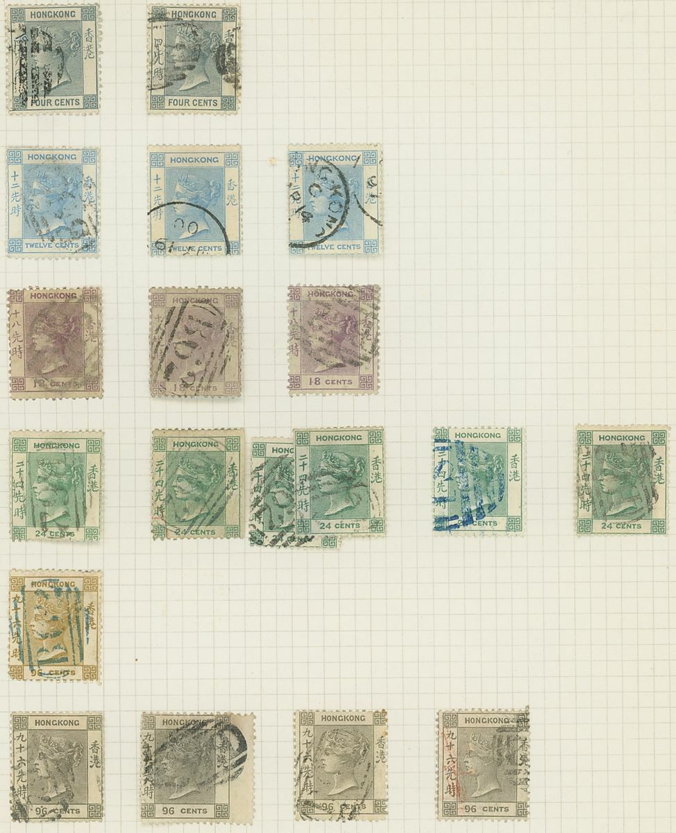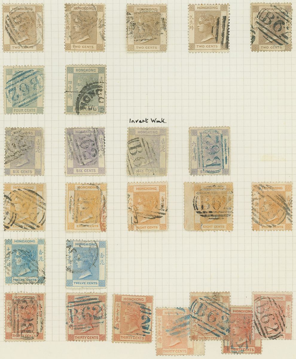 1863-71 CC used group on album pages with a variety of shades and some with inverted watermarks (78) including 2c. brown with inverted watermark, 48c. rose (6), 96c. bistre and 96c. brownish grey (4); a good range of shades and generally with good colour and clear cancellations. S.G. 8-19 group