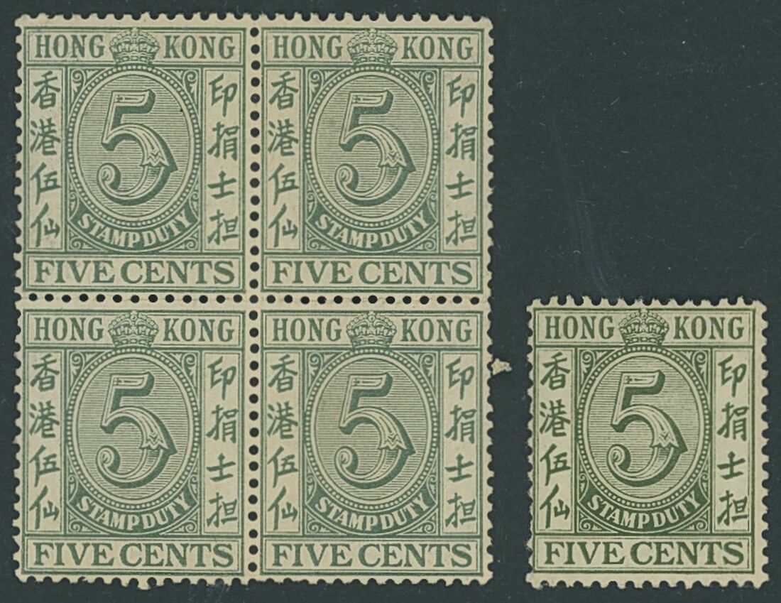 1938 Script 5c. green, block of four with large part original gum; also an MCA single example; fine mint. S.G. F12 etc.