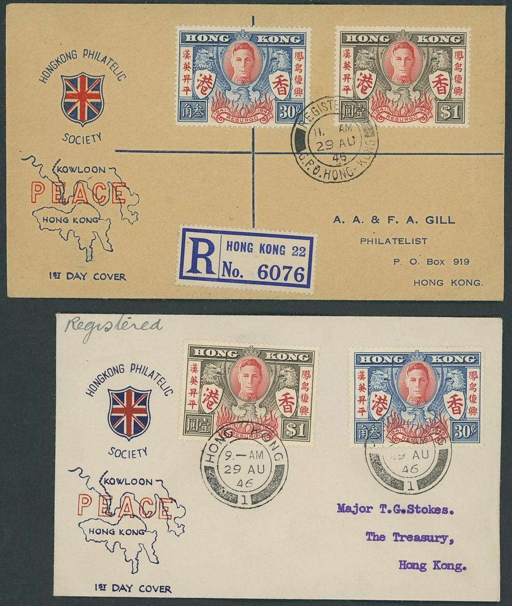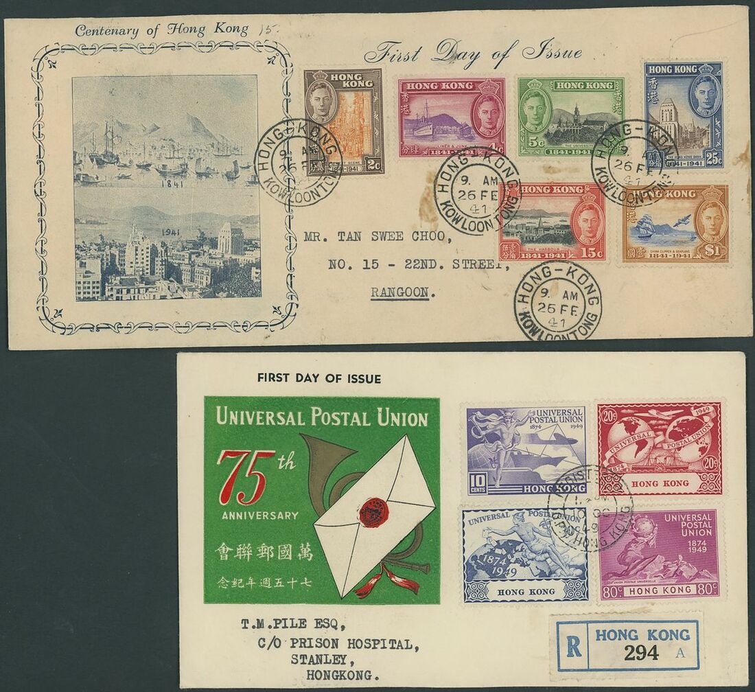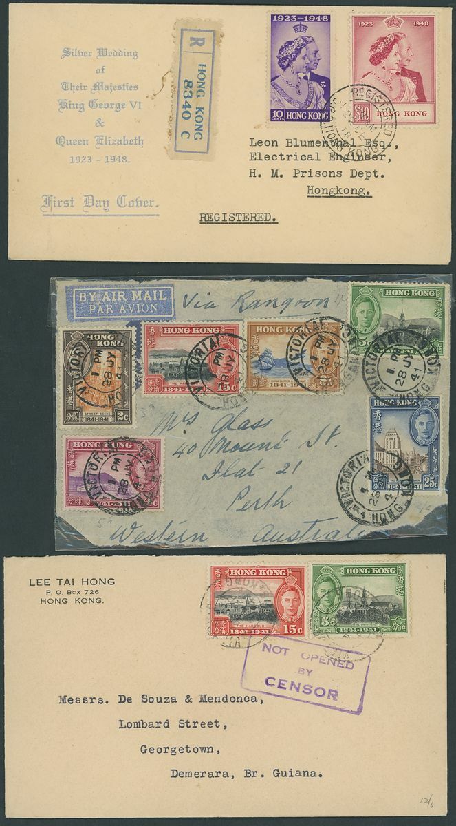 A group of KGVI covers and First day covers (8) including 1938 envelope to Shanghai bearing Postage Due 5c. when authorised for postal use, 1941 Centenary illustrated first day cover bearing the set of six to $1, 1941 front to Australia bearing full Centenary set to $1, 1946 illustrated first day covers (2) bearing 30c. and $1, one sent registered, 1948 Silver Wedding first day cover sent registered bearing 10c. and $10, 1949 U.P.U set used on first day cover, etc.; a good to fine group