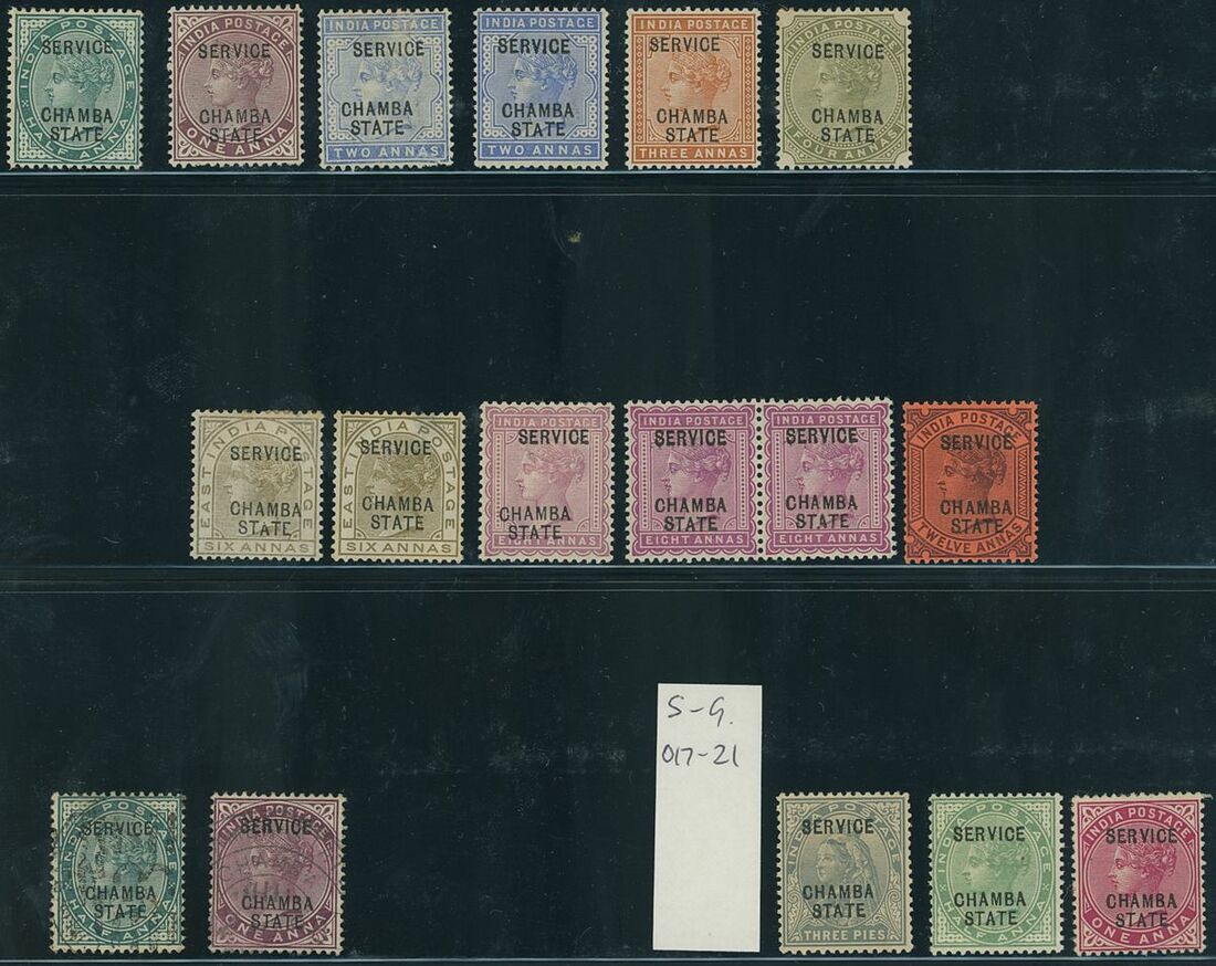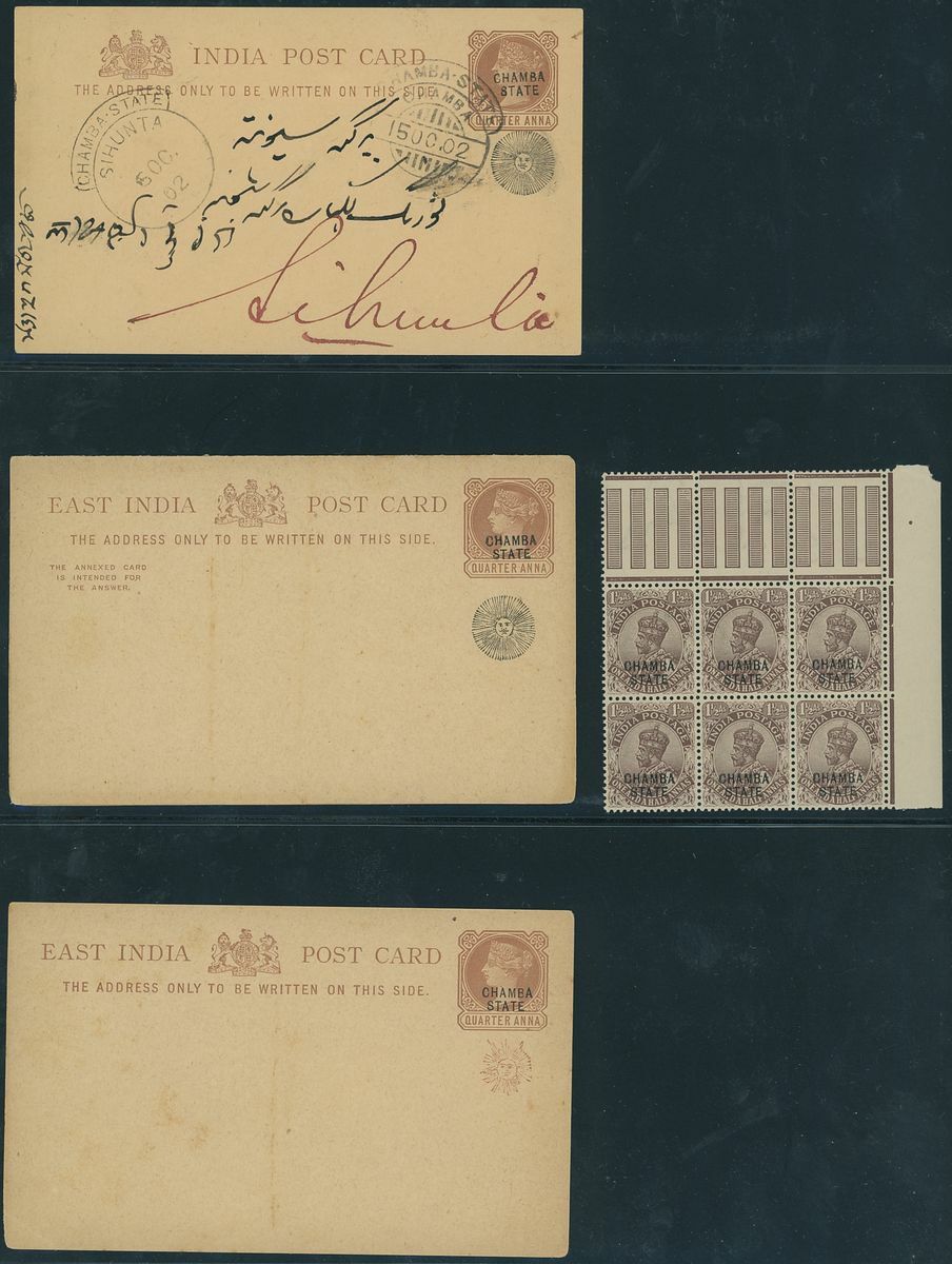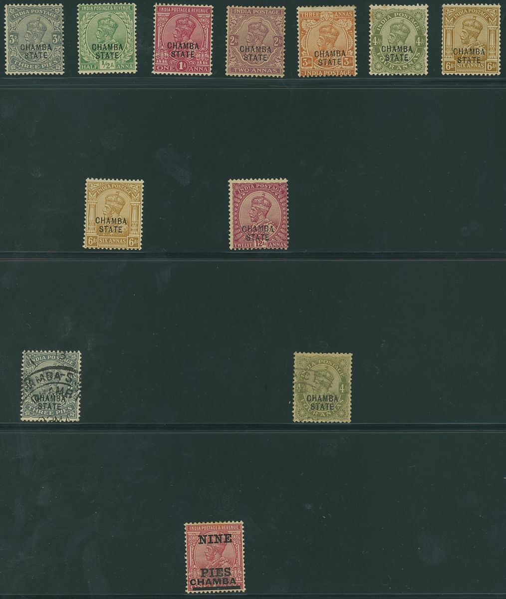 A mint and used collection; the mint include 1887-95 to 1r. (both) with some shades, 1900-04 3p. with overprint inverted (2), 1903-05 3p. to 1r., 1927-37 to 1r., 1938 to 1r. and Official 1887-98 to 12a. and 1927-39 to 1r.; the used include 1887-95 to 12a., 1900-04 2a. and 1903-05 3p. to 1r. (2). Also Faridkot mint and used collection including 1887-1900 to 1r. (both) mint and 1r. green and carmine used and Official 1887-98 1r. slate mint. A few faults though generally fine