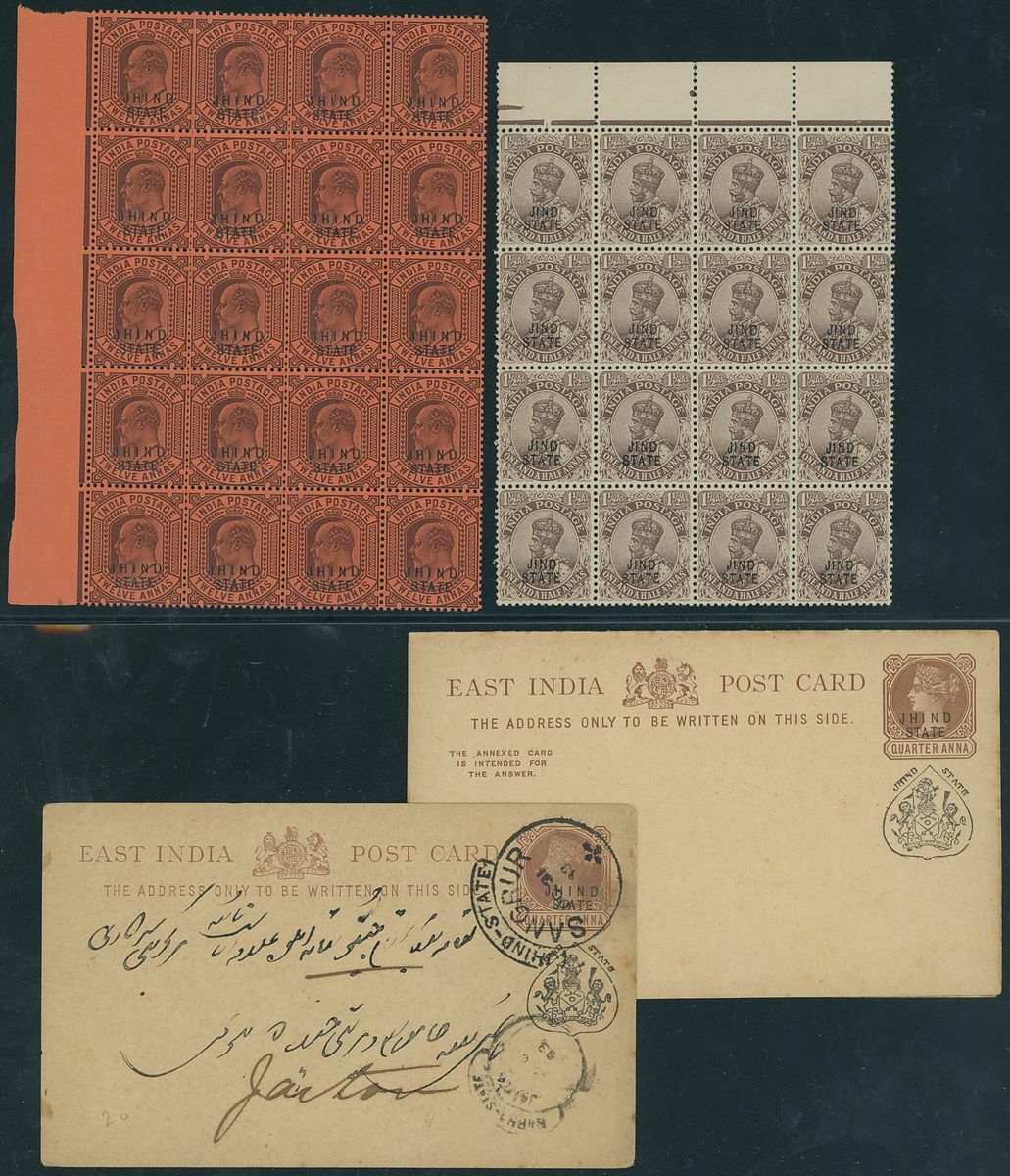 A mint and used collection; the mint include 1886 overprint in red 1r., 1886-99 ½a. to 2r., 1903-09 3a. with overprint double and 12a. marginal block of twenty, 1914-27 to 5r., 1927-37 to 15r., 1941-43 to 5r. and Official 1886-1902 1a. to 1r. and 1927-37 to 5r.; the used include 1886-99 8a., 12a. and 1r. green and carmine and 1886-1902 1r. Condition chiefly fine