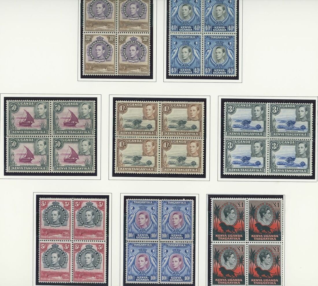 1938 (11 Apr.) set of twenty to £1, each in a block of four; unmounted mint, fine. S.G. 131-150b, £1,000