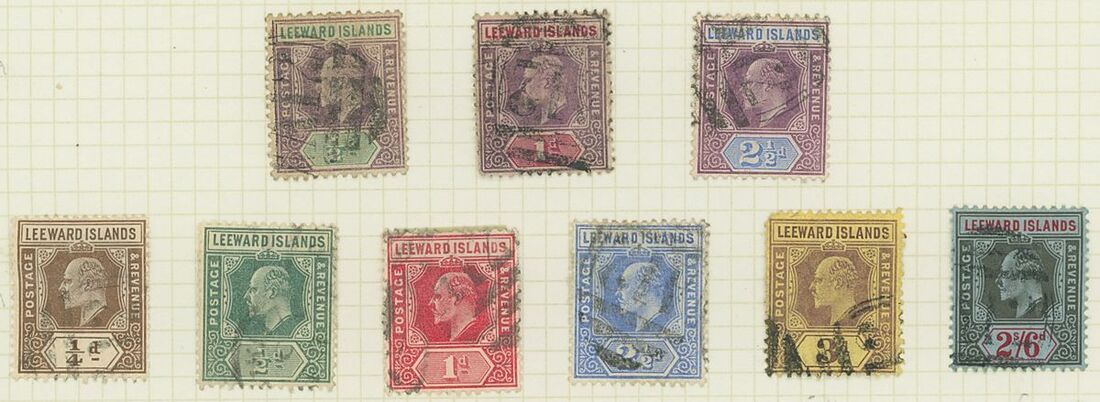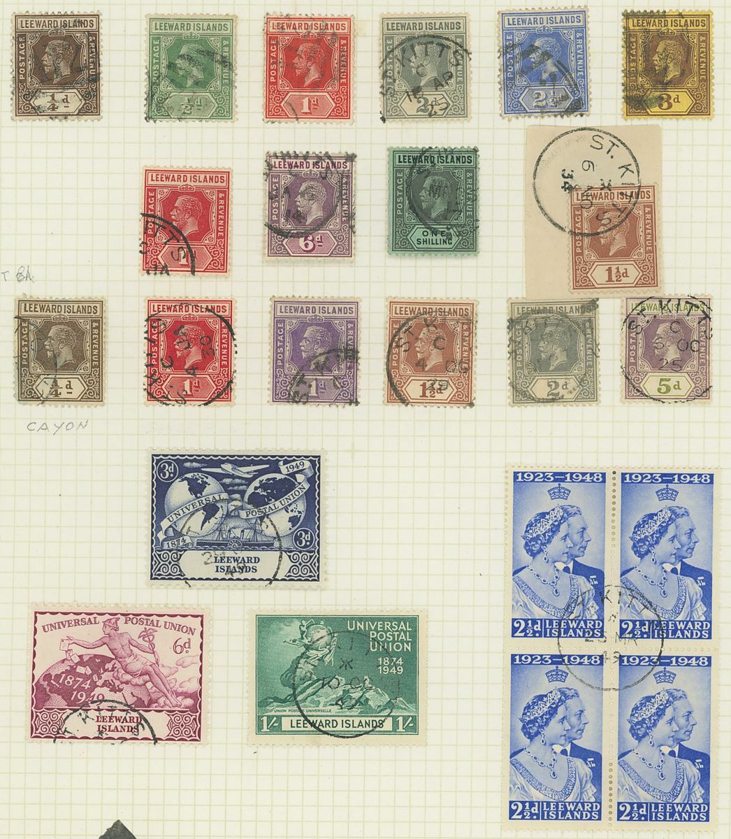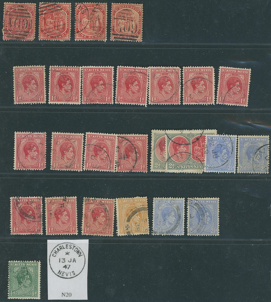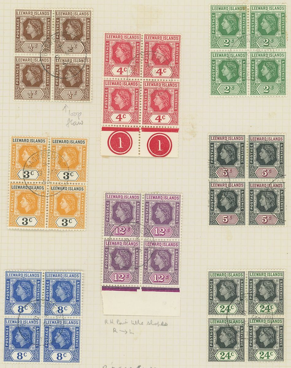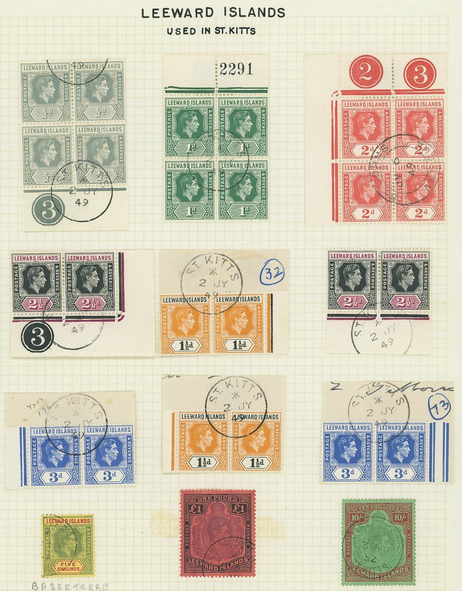Collection on pages, including Antigua, Dominica (120+) with horizontal and vertical oval "A07", Montserrat, Nevis, St. Kitts (150+), etc., mixed condition