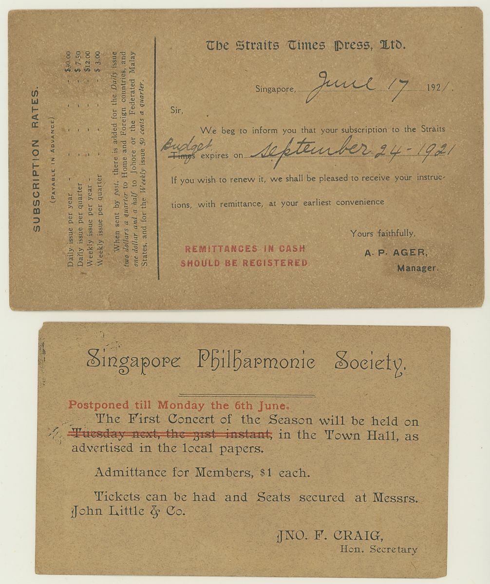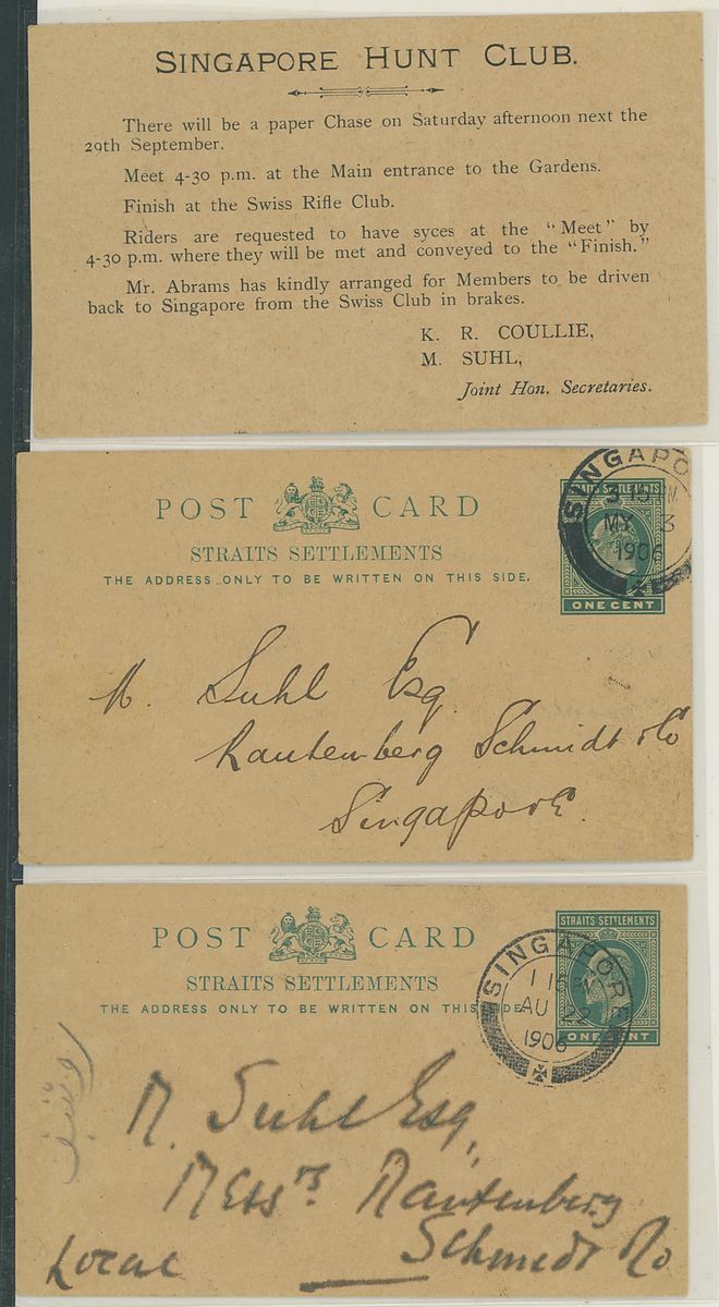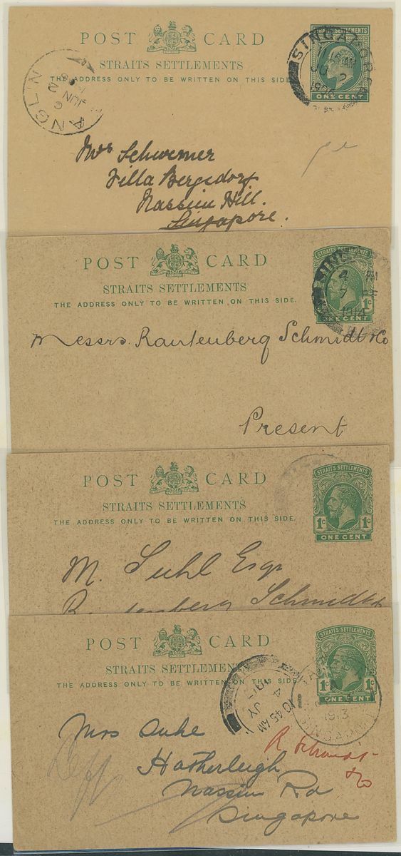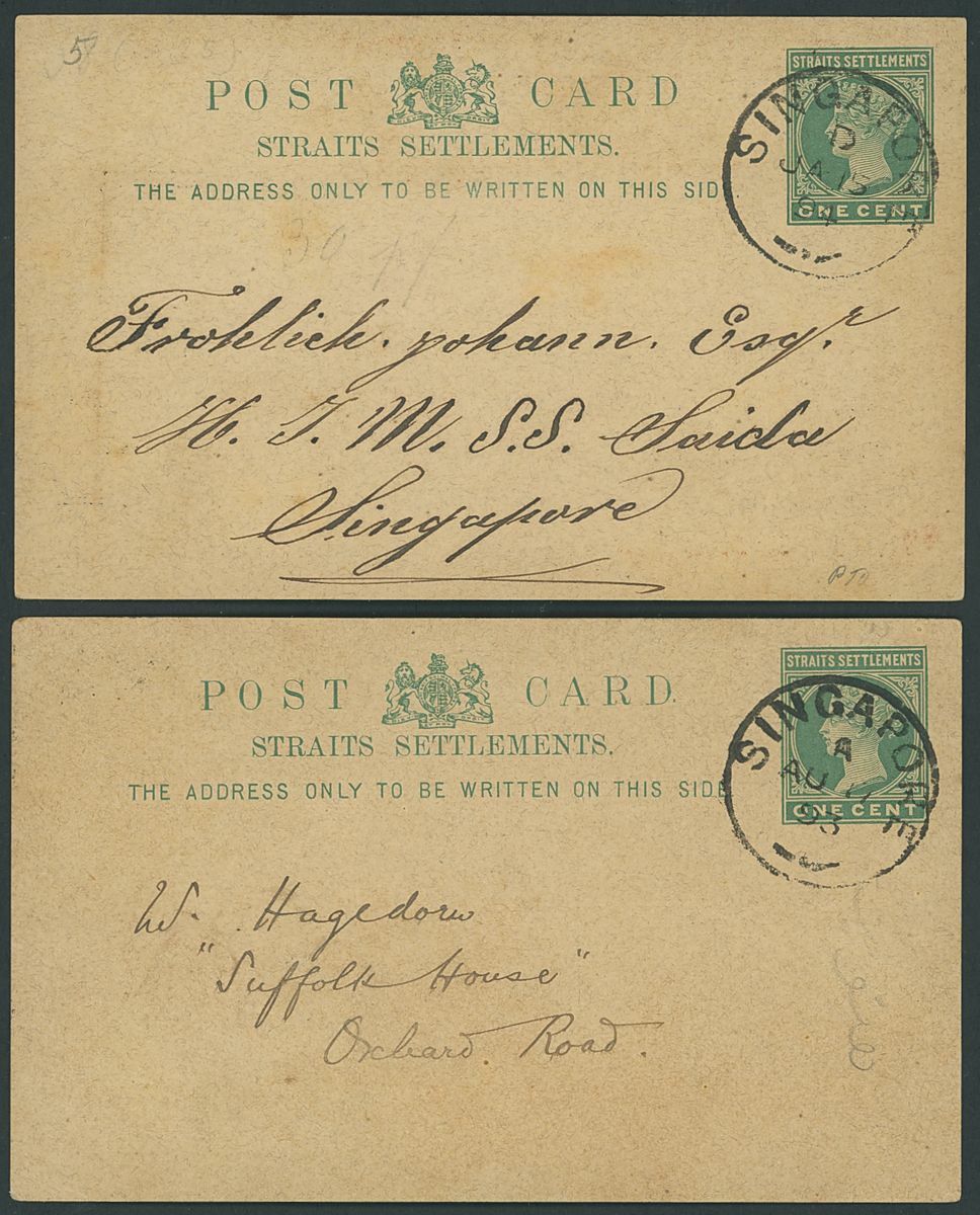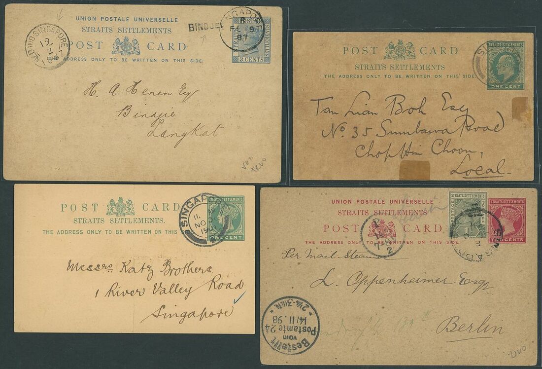 1887-1929 postal stationery with printed advertising selection (54) with a range of different advertising comprising luxury items, dentistry, Hotel, meetings etc. including 1887 1c. green post card from Penang advertising Goat Goring in the Supreme Court, 1887 3c. post card to Langkat showing