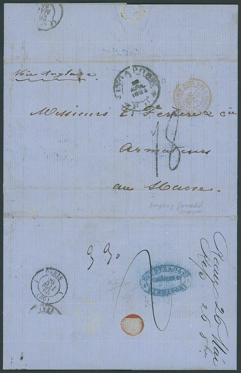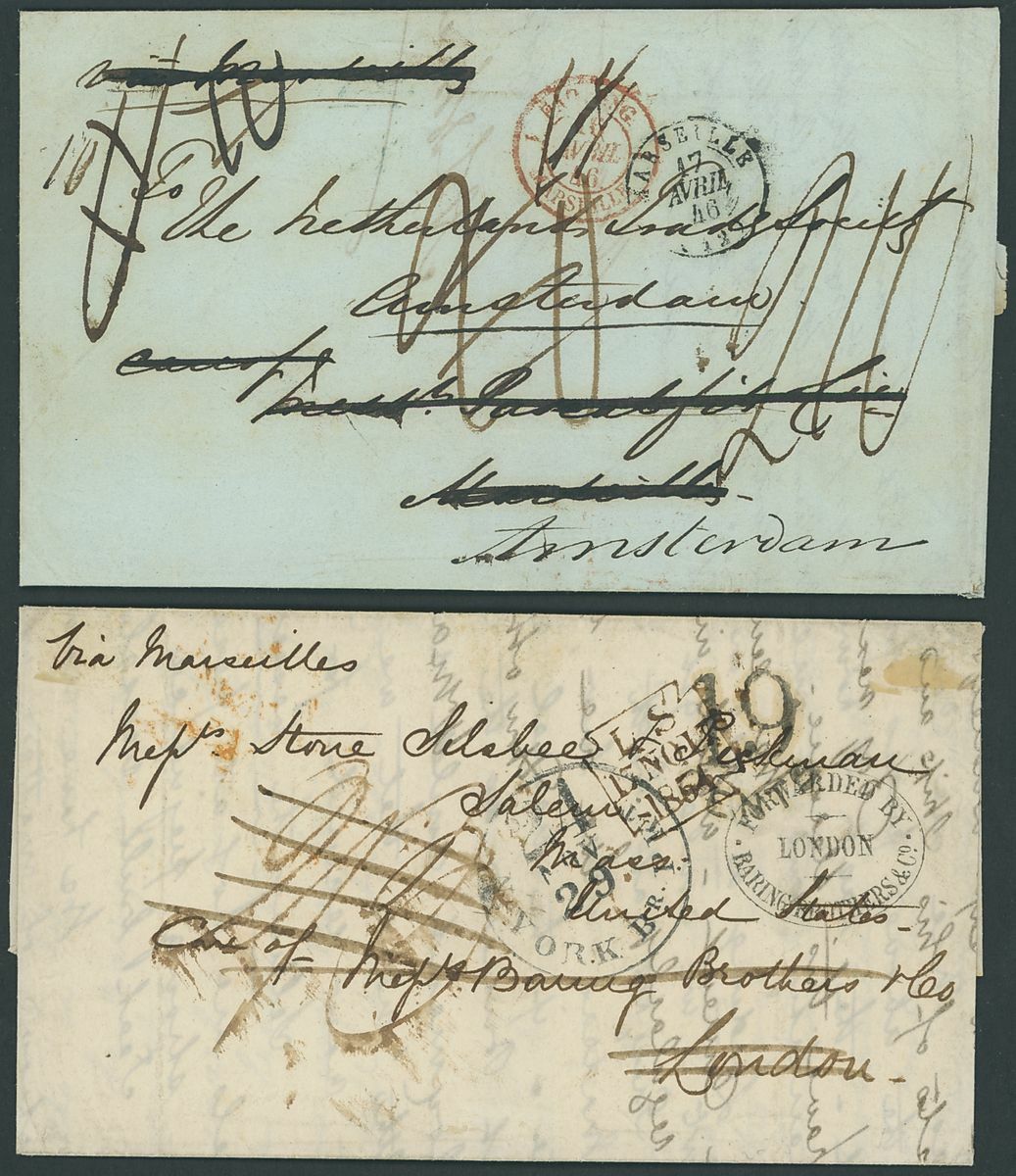 1846-65 stampless entire selection (7) with interest in the Malayan area including 1846 from Singapore via Alexandria and