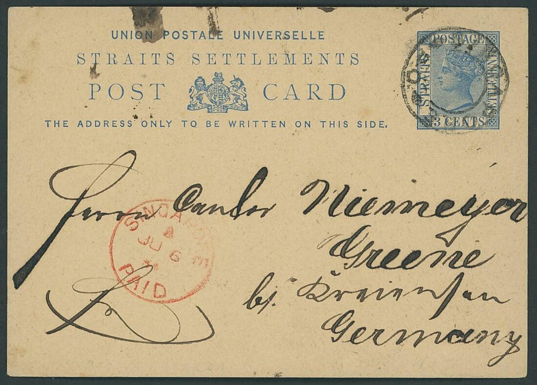 1883 (6 June) 3c. blue to Austria, cancelled by circular undated