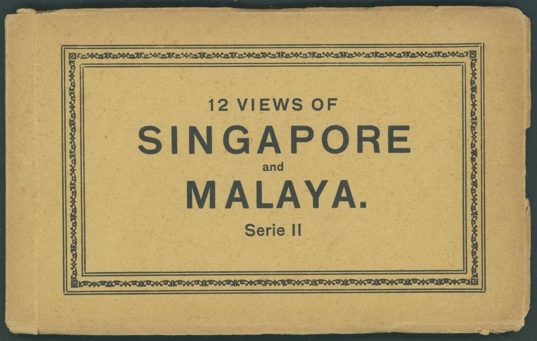 "12 Views of Singapore and Malaya, Serie II" booklet by unknown publisher, complete, pictures include Municipal Offices, General Post Office, Alkaff Gardens, St. Joseph Institution, Government Garden and Singapore River; cover a little soiled and with tear at foot of fold