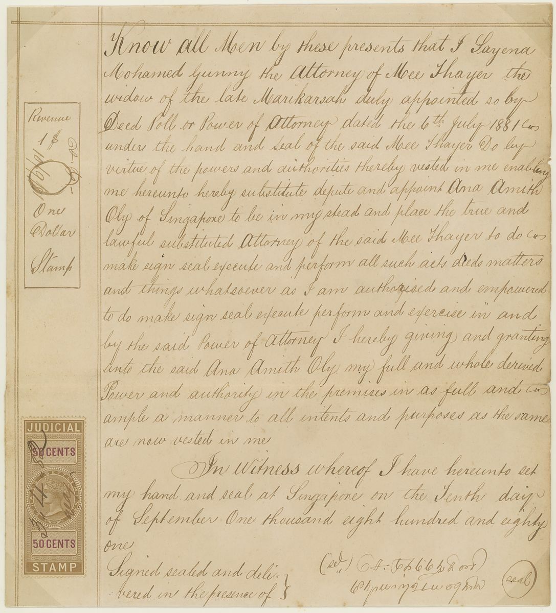 1882-85 duo of documents with hand-drawn stamp including 1882 Power of Attorney bearing 'Judicial' 50c. and with hand-drawn $1, 1885 Indenture of Mortgage with hand-drawn 50c., usual minor imperfections nevertheless a most unusual duo.