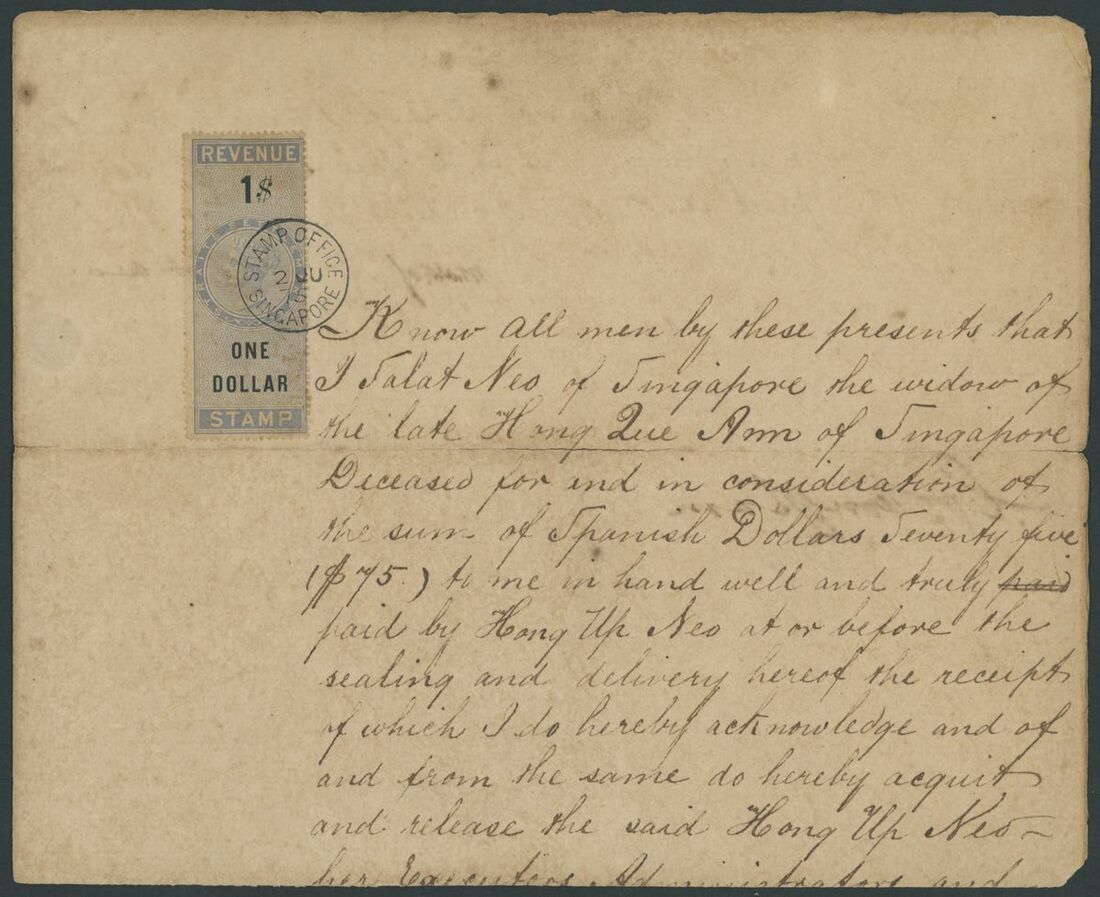 1875 (2 June) Assignment bearing 1874 $1 tied by