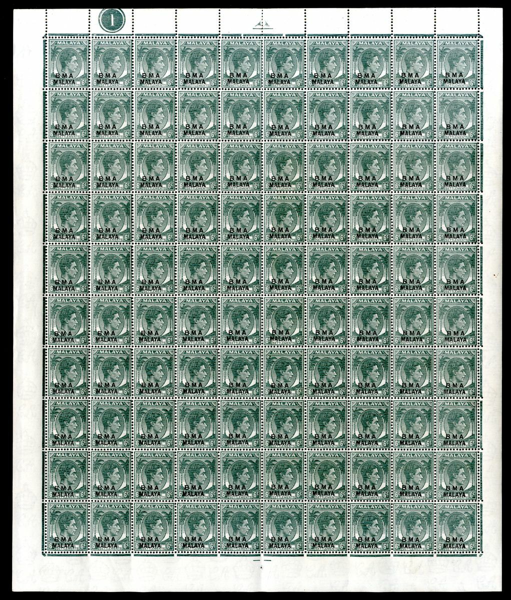 Melbourne Printing (June-July 1946) 6c. grey on striated paper, a complete mint sheet (10x10), fresh and fine unmounted mint. S.G. 6b, £2,200