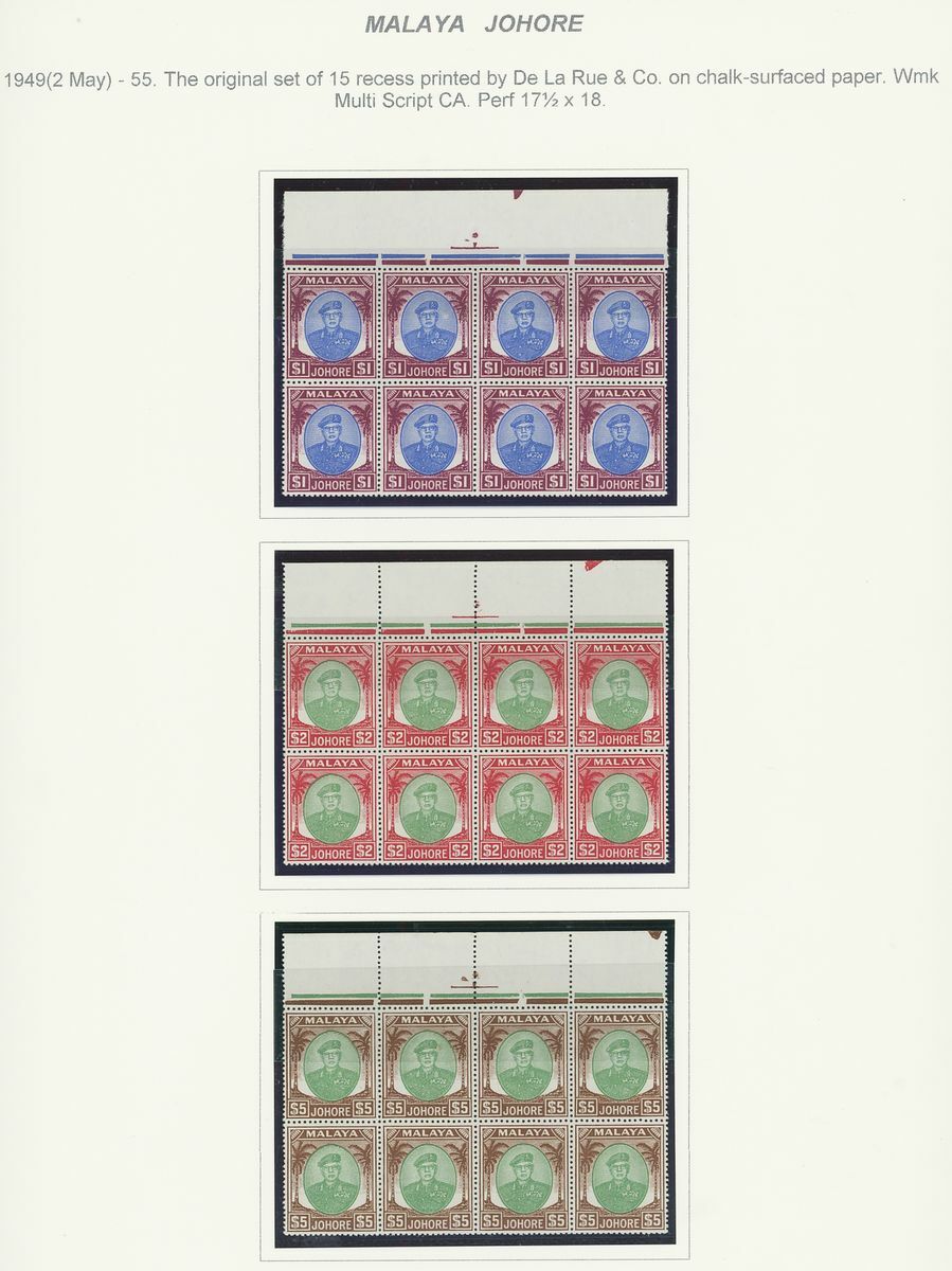 1949 -55 set of fifteen to $5, each in a block of eight from the top of the sheet; fine unmounted mint. S.G. 133-147, £1,280