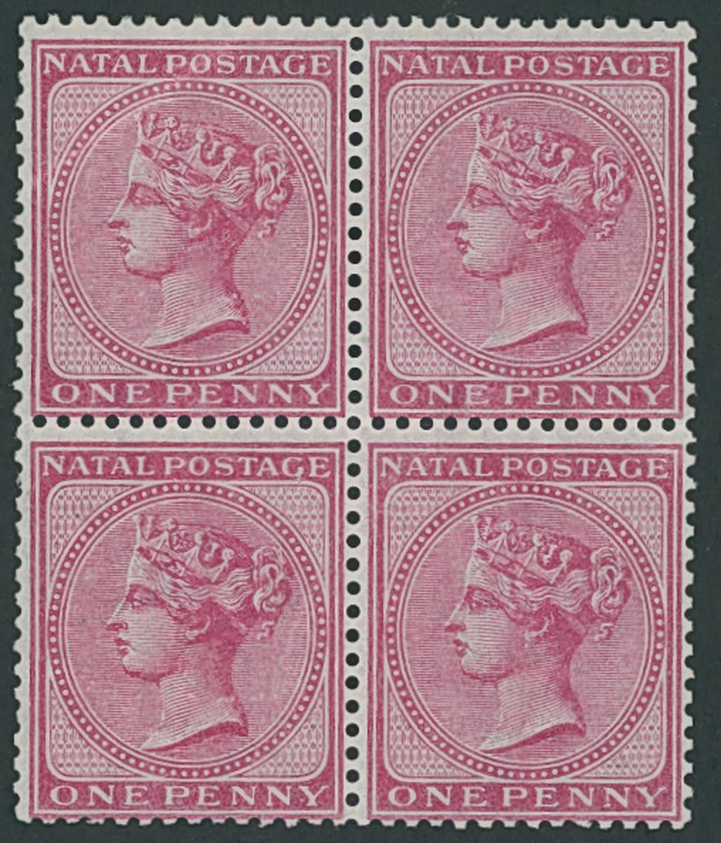 1874-99 CC 1d. dull rose block of four with large part original gum, one with light diagonal crease otherwise fine. A scarce multiple. S.G. 66, £280