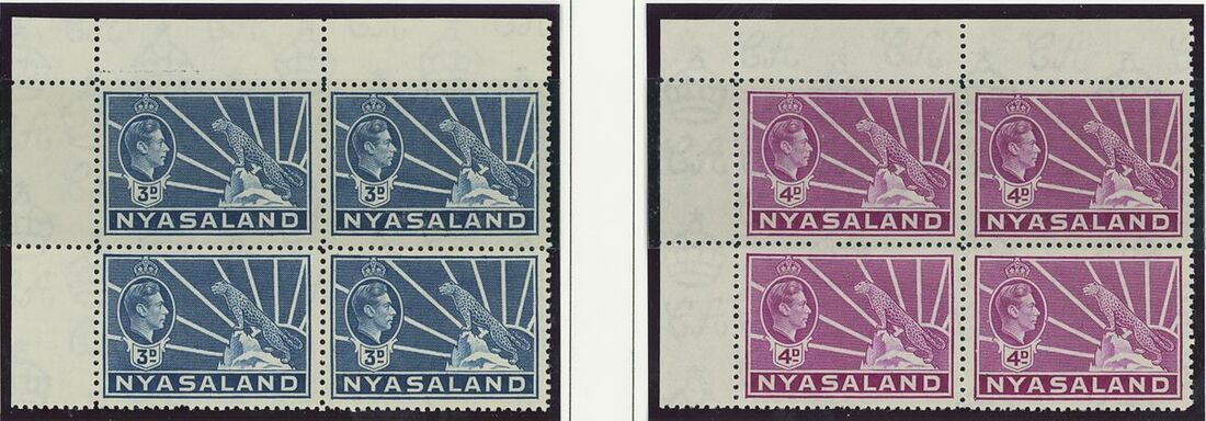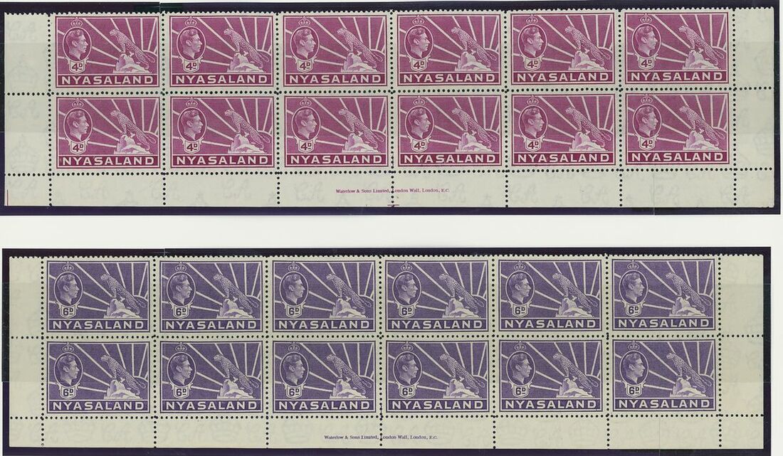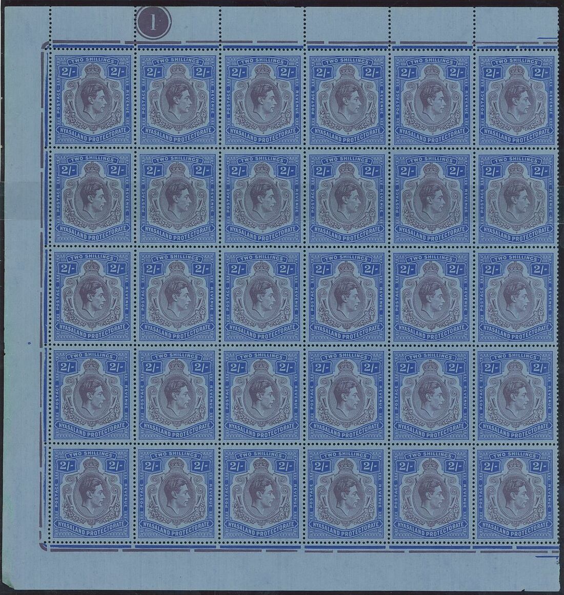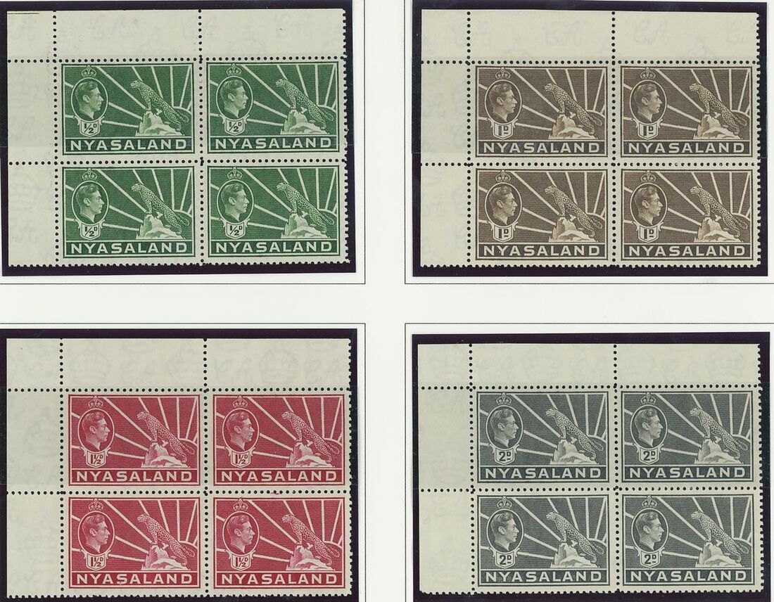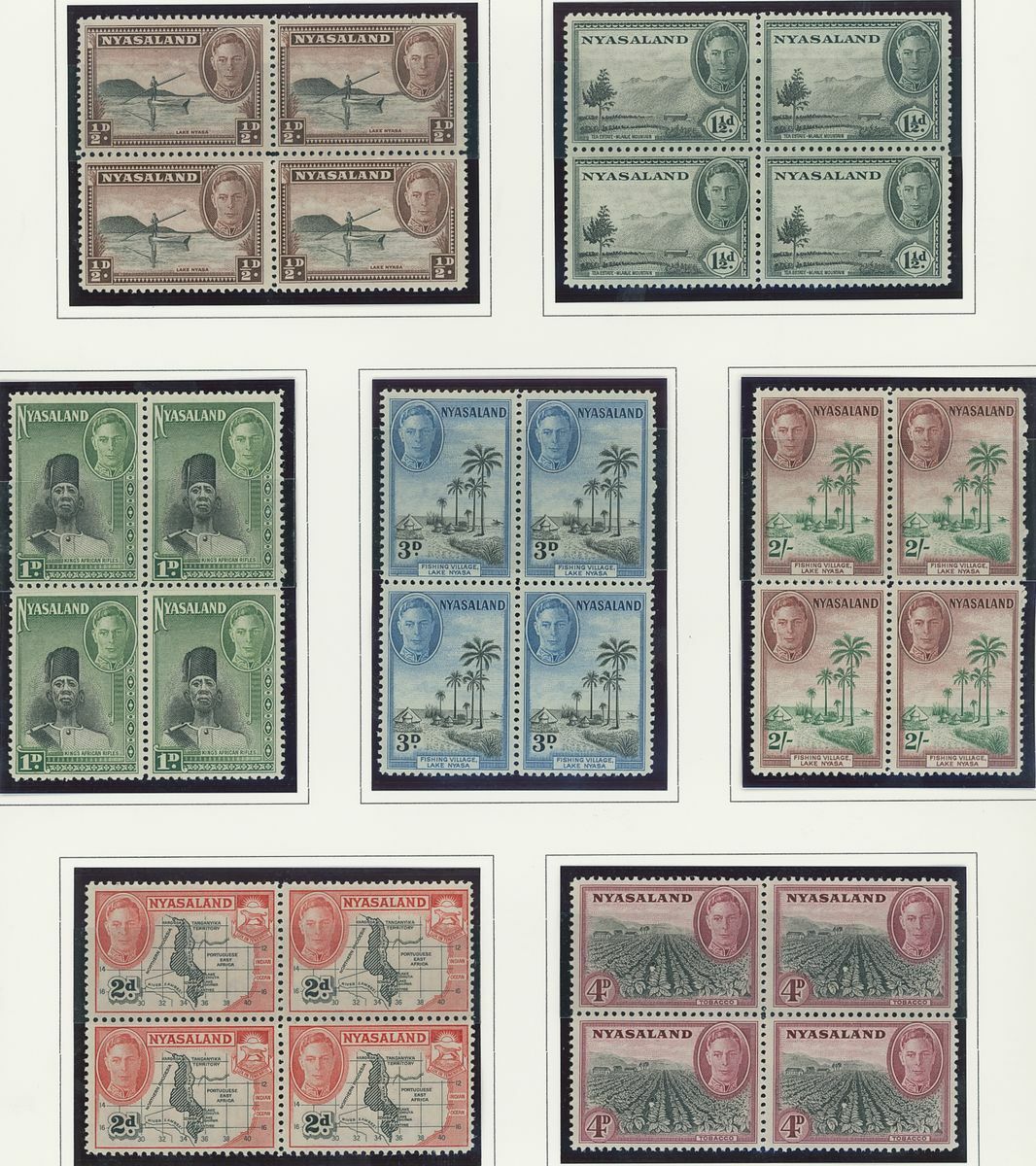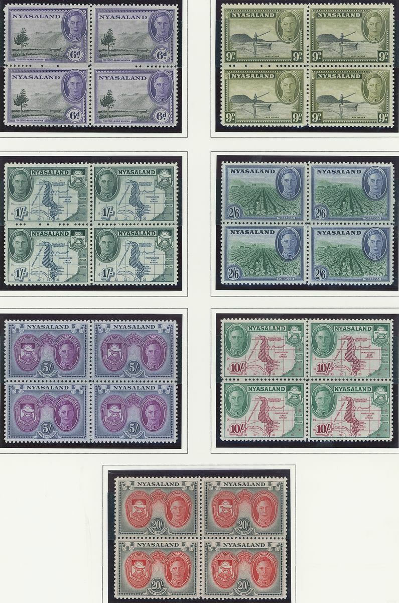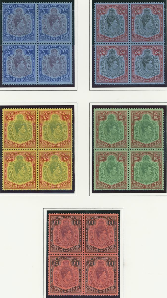 1938-45 mint group of blocks of four comprising 1938 set of eighteen to £1 and with control '1' blocks of thirty of 2/- and 2/6d., also the low values to 1/- each in an imprint block of twelve and the 1945 set of fifteen to 20/-; fine unmounted mint. S.G. cat. value £2,200+