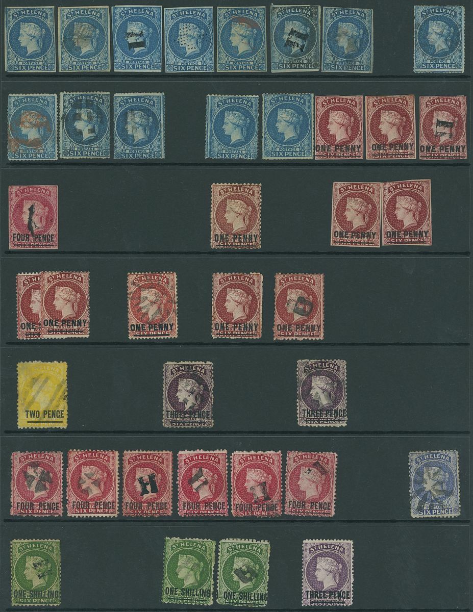 QV selection (98) on stock pages, including 1856 imperf. 6d. (unused and six used), 1861 6d. (unused (2) and five used), 183 imperf. 1d. (5), 4d., 1864-80 with values to 5/-, perf. 14 1/- block of four, 1884-94 4d. block of four, 1890-97 10d., two forgeries, etc., mixed condition