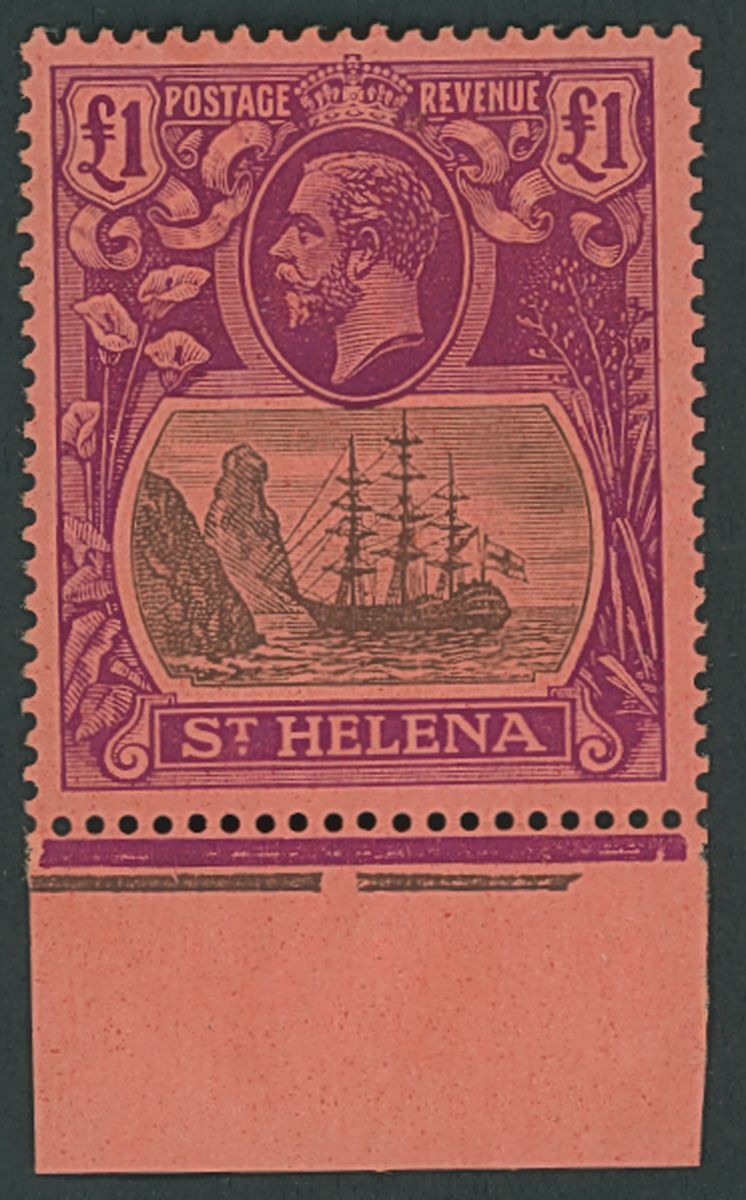 1922-37 MCA £1 grey and purple on red, unmounted mint from the foot of the sheet (hinged in the margin); fine. S.G. 96, £450