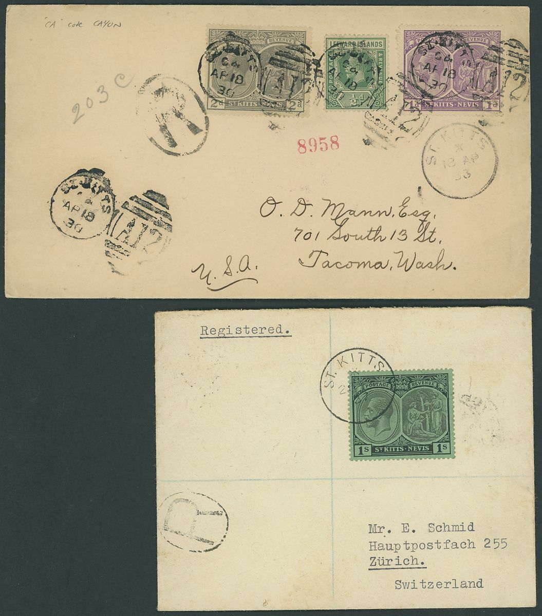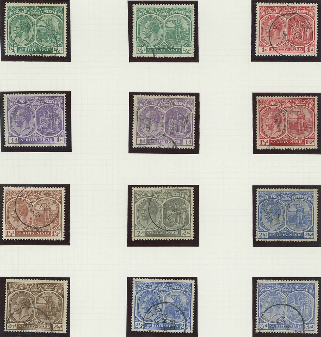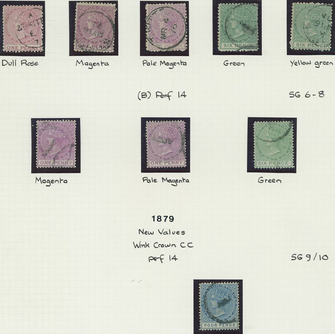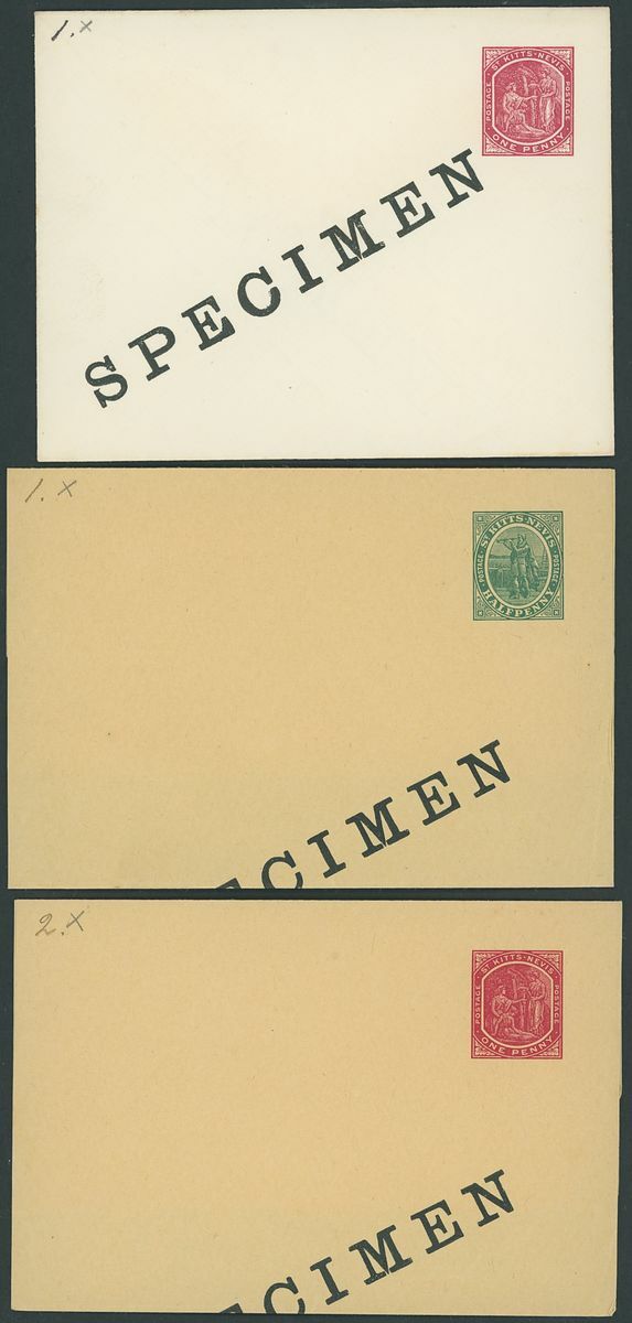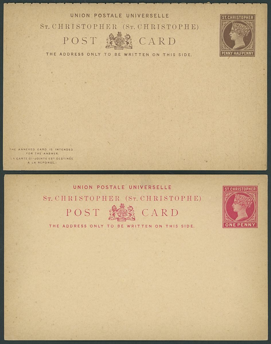 Used selection on pages, including St. Christopher 1882-90 2½d. red-brown (2), 1884 4d. on 6d., 1885 "Halfpenny" on half 1d., 1886 4d. on 6d., Nevis 1882-90 2½d. red-brown, 6d. green, 6d. chestnut, St. Kitts Nevis 1920-22 10/-, 1930 cover to Washington franked 1d., 2d. and Leeward ½d., Postal stationery (unused or overprinted "