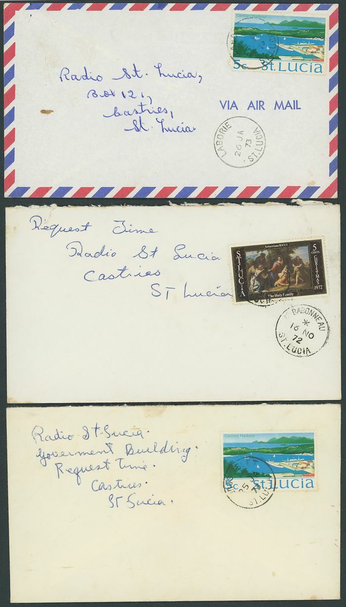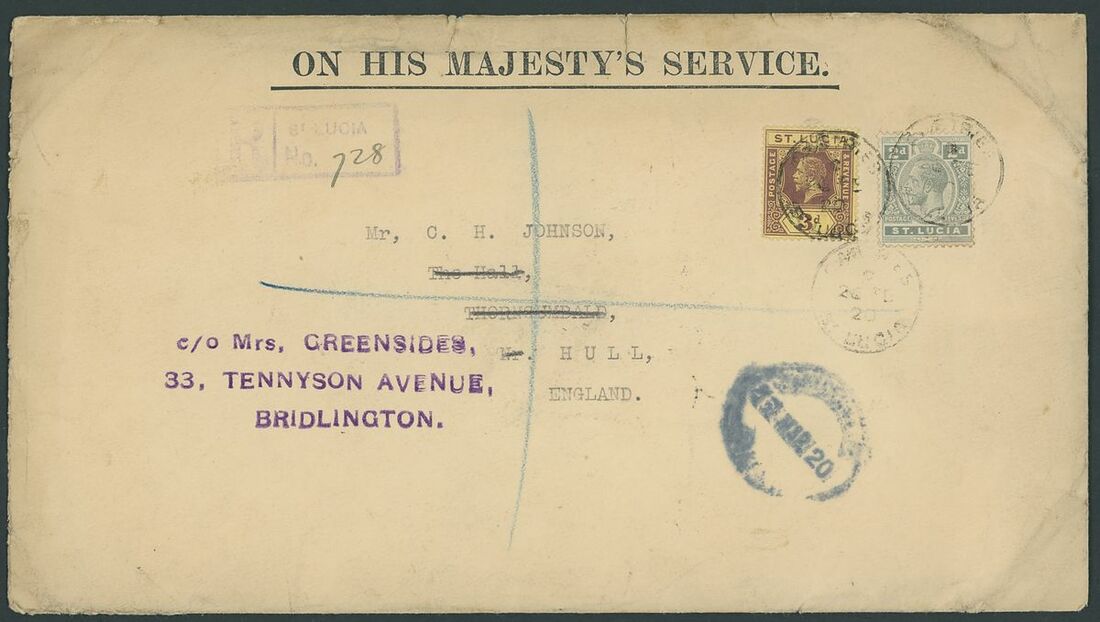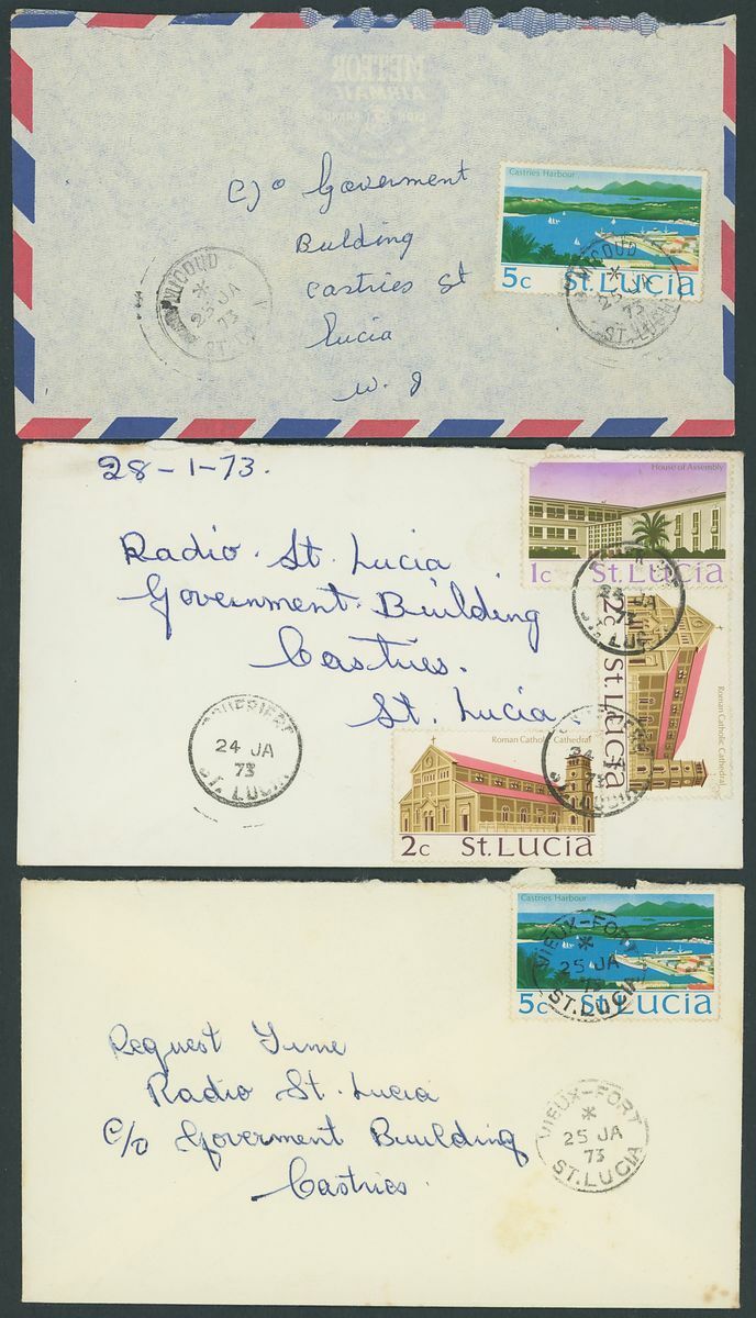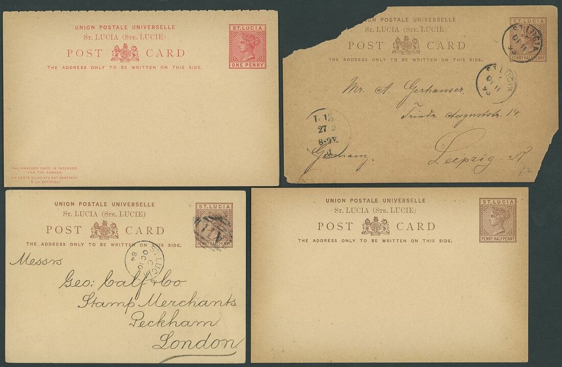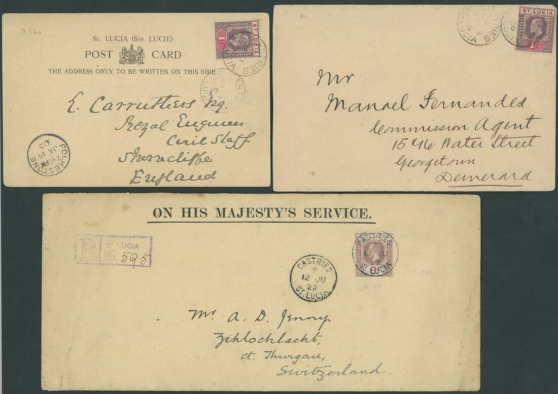 1884-1973, selection of forty-three covers and cards, including 1929 (Sept.) Air Mail covers to Porto Rico, East Orange and St. Thomas, 1931 (Jan.) Guyana to Guadeloupe first flight cover with Castries transit on the reverse, 1939 cover Registered to London franked 1936 2d. block of four, later issues, postal stationery, etc., mixed condition