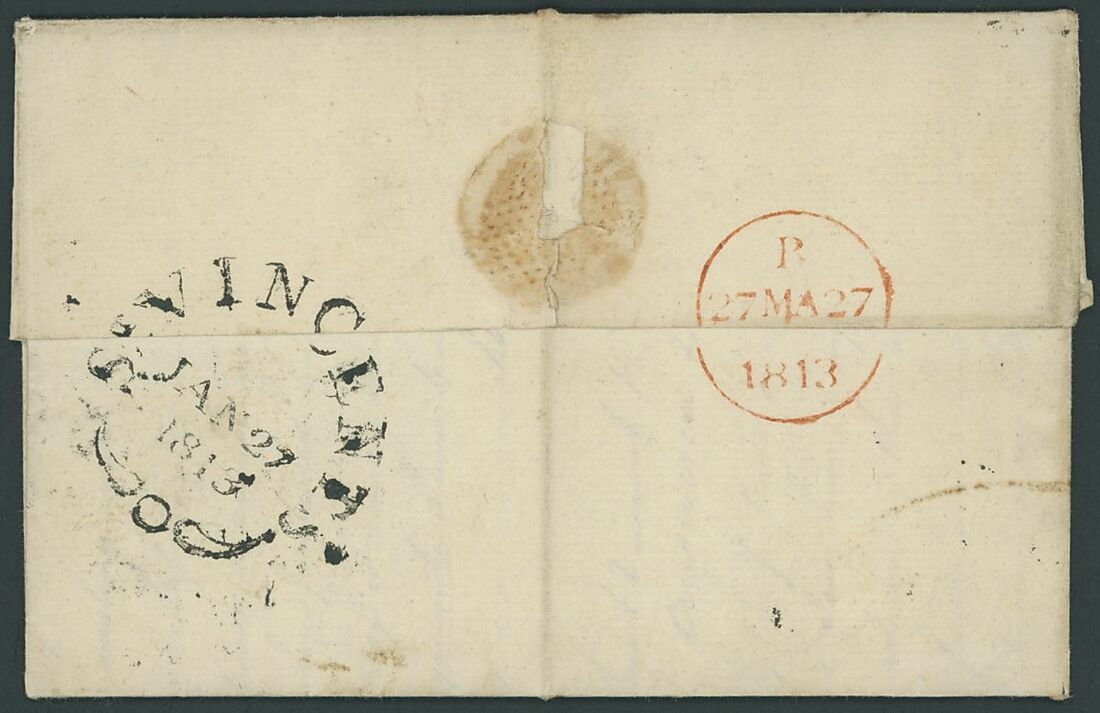1813 (27 Jan.) entire letter to London, rated "4/4" and showing, on reverse across join, fine
