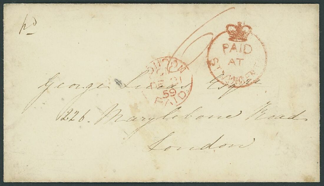 1859 (21 Dec.) envelope to London, rated "6", showing good to fine Crowned circle