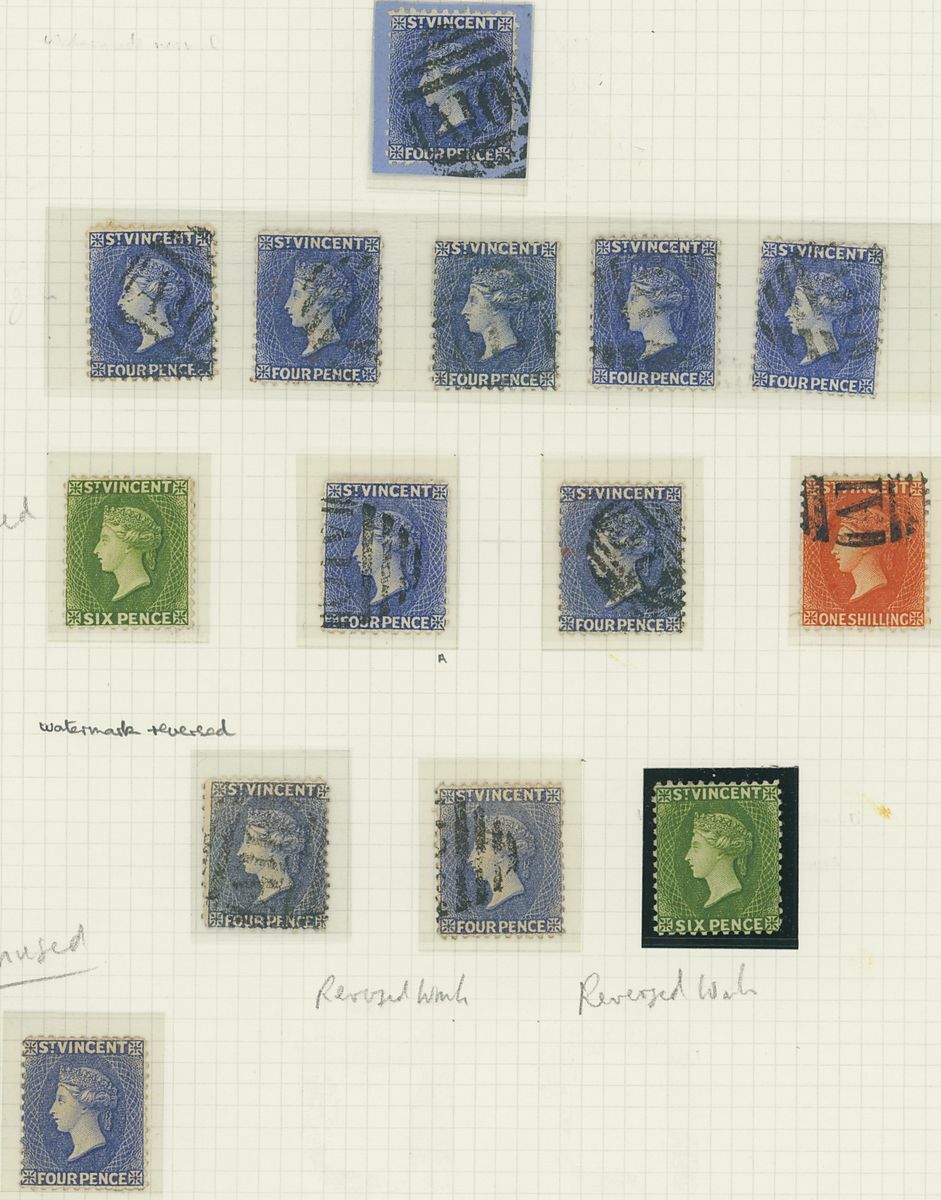 1883-84 selection (19), the unused/mint with 4d. ultramarine-blue with watermark reversed, 6d. bright green (2, one with watermark reversed), the used with ½d. green (5), 4d. ultramarine-blue (8, one on piece), 4d. grey-blue with watermark reversed (2, both with faults) and 1/-