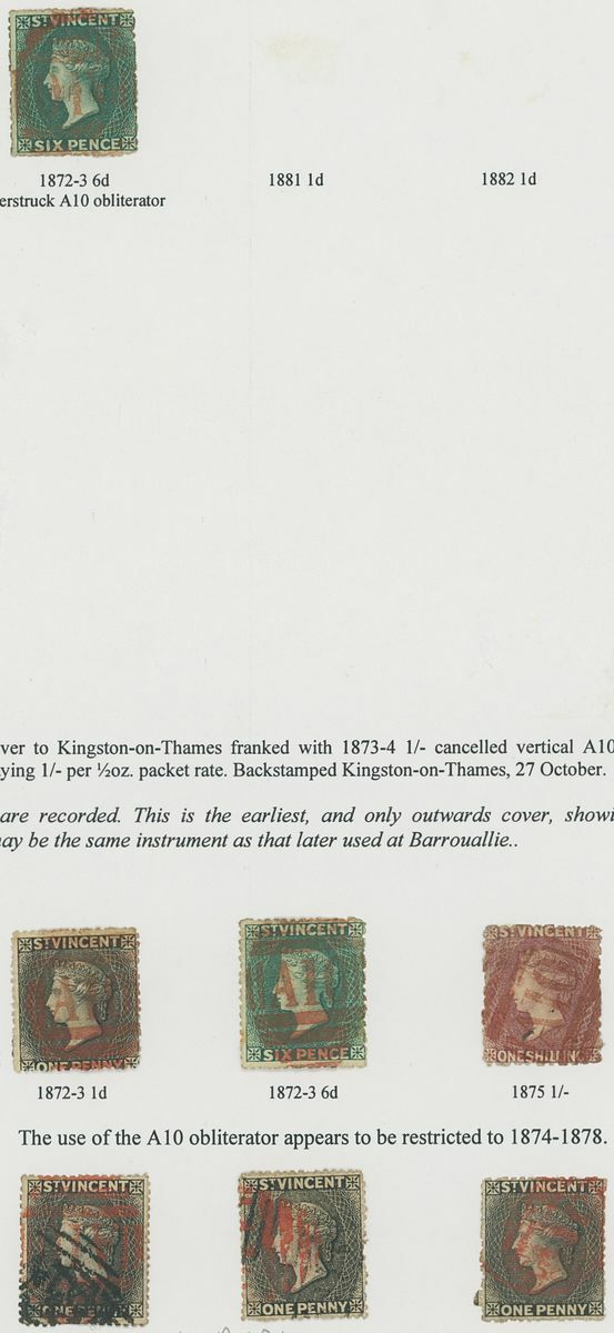 A selection of "A10" obliterators on a variety of values (85) with values to 1/-, many in red and some in red and in black, and in black only on 1885-93 1d. red block of twenty; fair to fine strikes