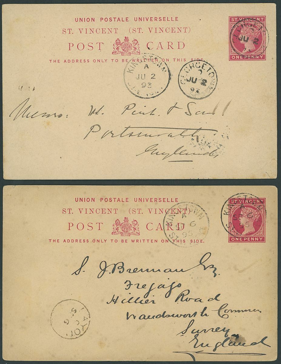 1893 (2 June) 1d. stationery card to Portsmouth, cancelled by poor