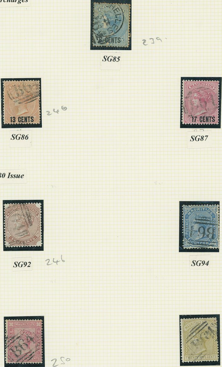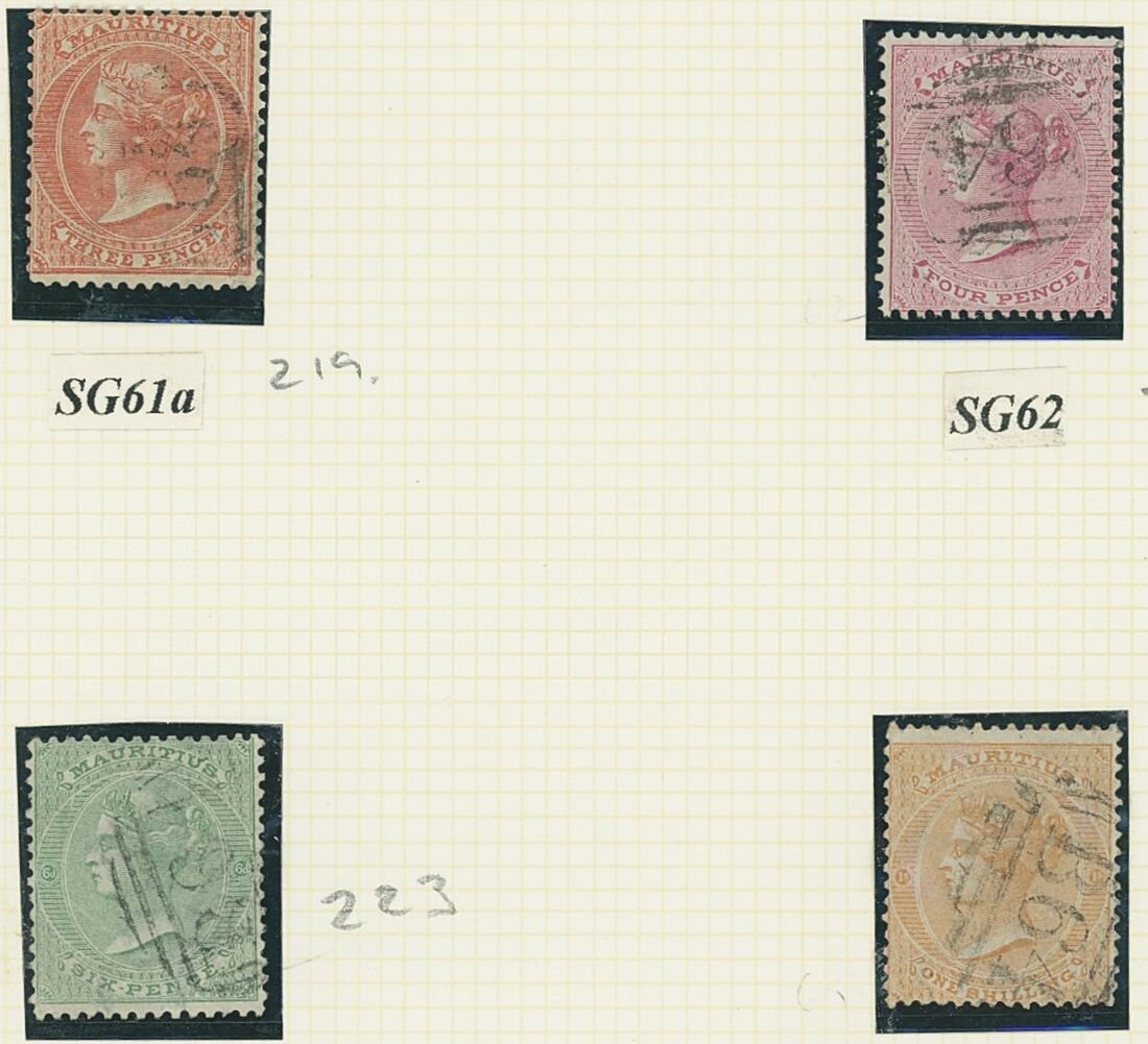1863-1880 used group of Mauritius stamps all cancelled by the Seychelles
