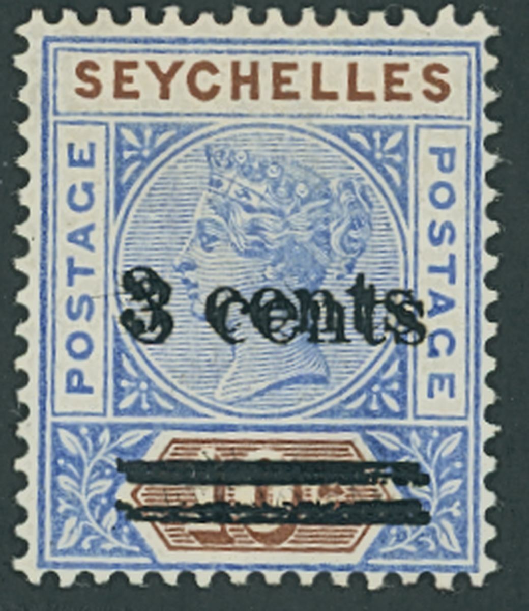 1901 3c. on 10c. bright ultramarine and brown , variety surcharge double, lightly mounted mint; fine. B.P.A. Certificate (1988). S.G. 37a, £850