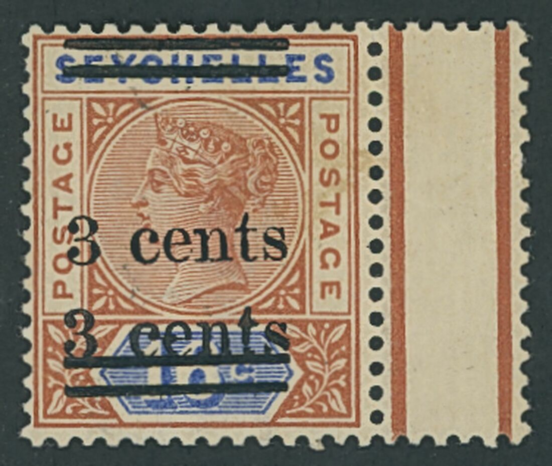 1901 3c. on 16c. chestnut and ultramarine, variety surcharge double, large part original gum with interpanneau margin at right; fine. S.G. 38b, £500