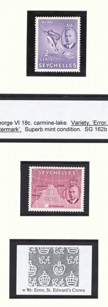 1952 2c. lilac, 18c. carmine-lake and 50c. reddish violet all with variety St. Edward's Crown in watermark; fine and fresh lightly mounted mint. S.G. 158b, 162b and 167b, £1,065