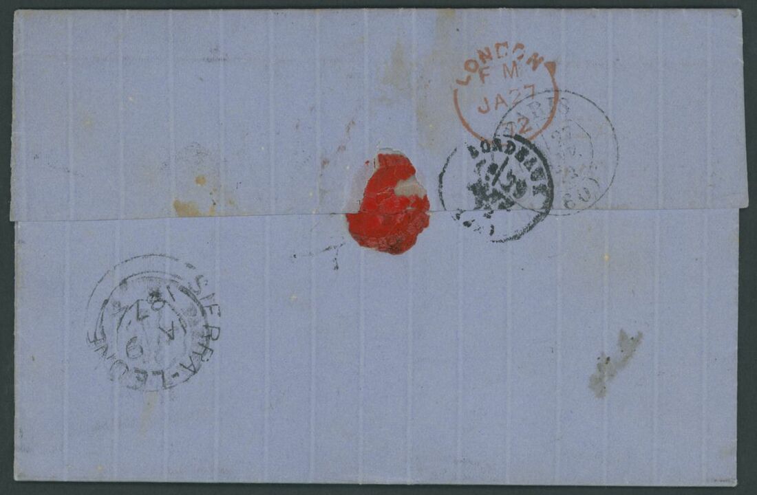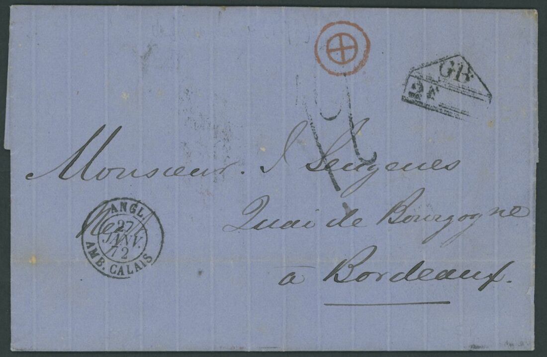 1872 (9 Jan.) entire letter to Bordeaux, showing London Inspector's h.s.,