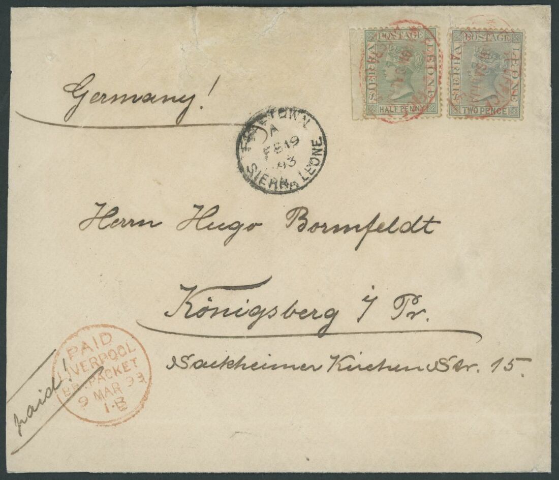 1893 (15 Feb.) envelope to Germany, bearing 1884 ½d. dull green and 2d. grey, both tied by