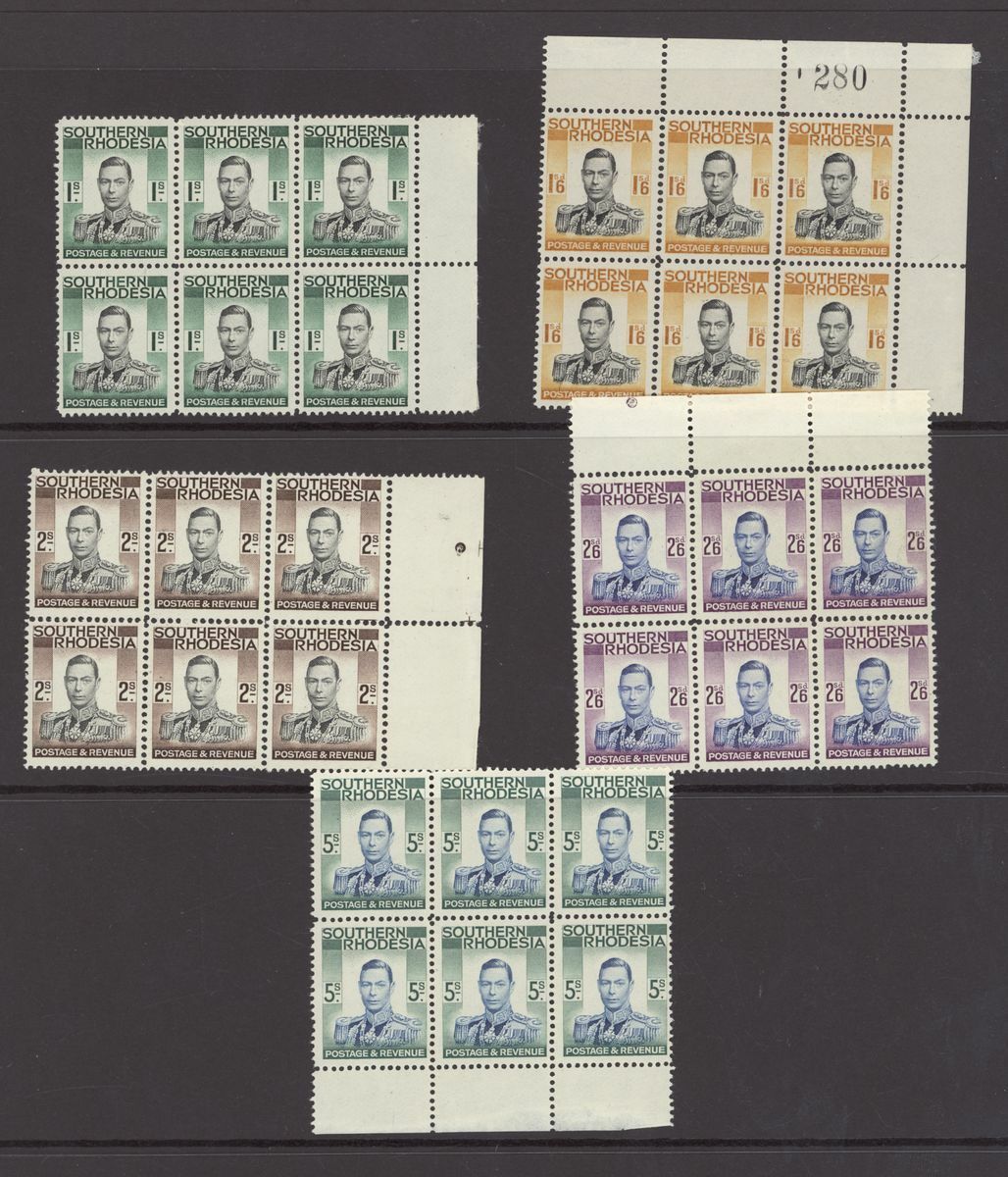 1937 set of thirteen to 5/-, each in a marginal block of six; generally fine and fresh mint. S.G. 40-52, £510+