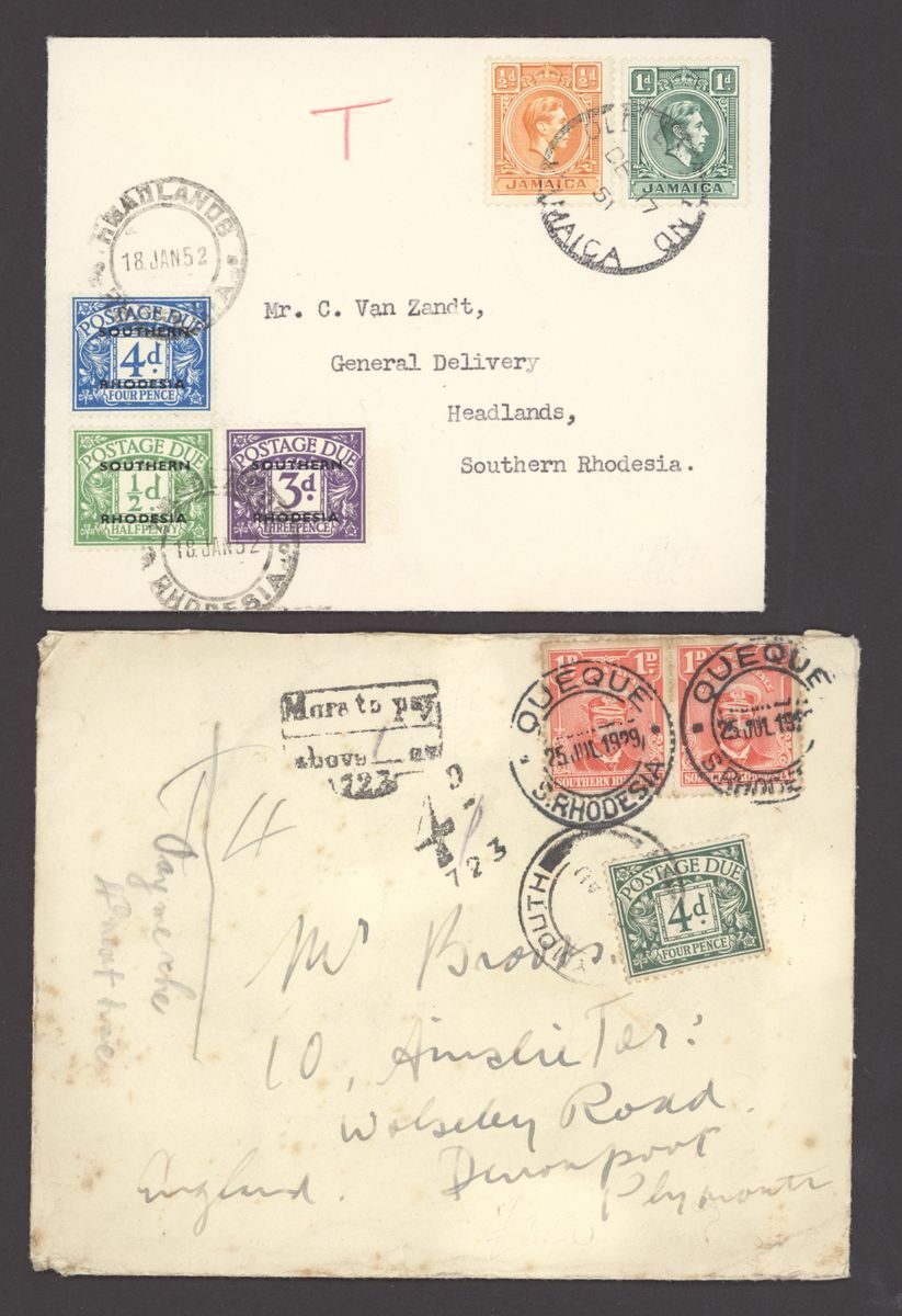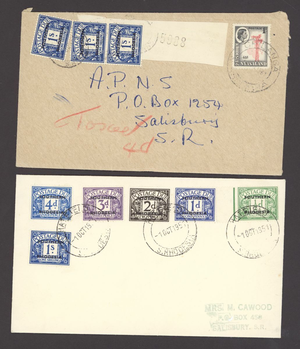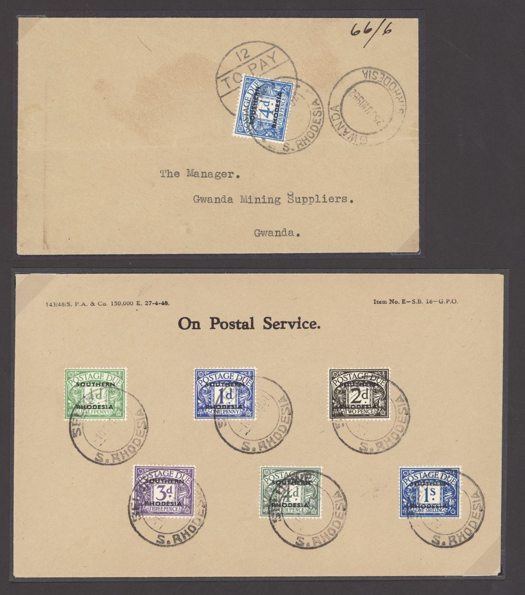 1951 mint and used collection on album pages including multiples of four or larger for each value (except the 4d. grey-green where there is a single example) as large as seventy-two of the ½d. and twenty of the 1d., also a range of covers including a large envelope to Bulawayo taxed 5/- and with 2d. agate (30) applied, also philatelic 'On Postal Service' envelope with one of each value applied (including 4d. grey-green) each tied by