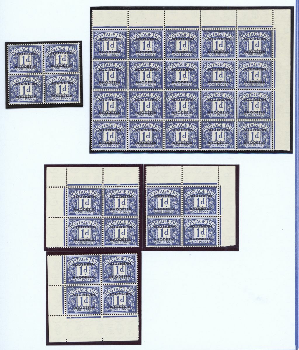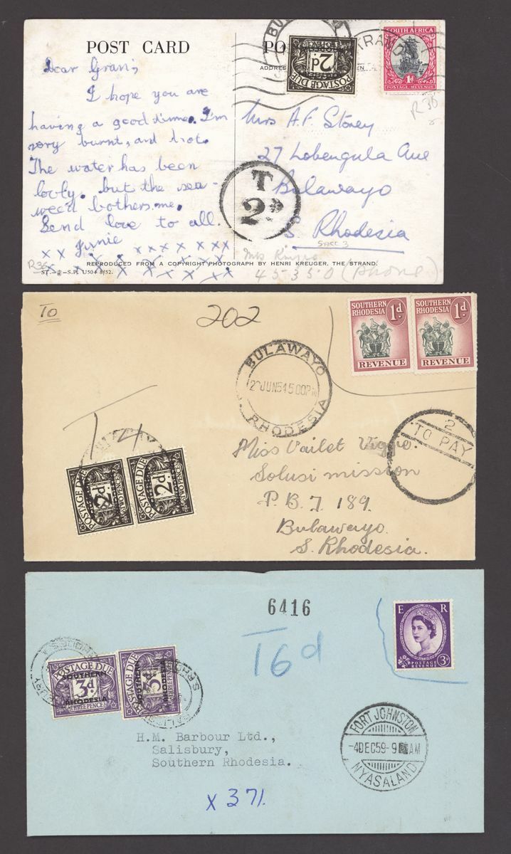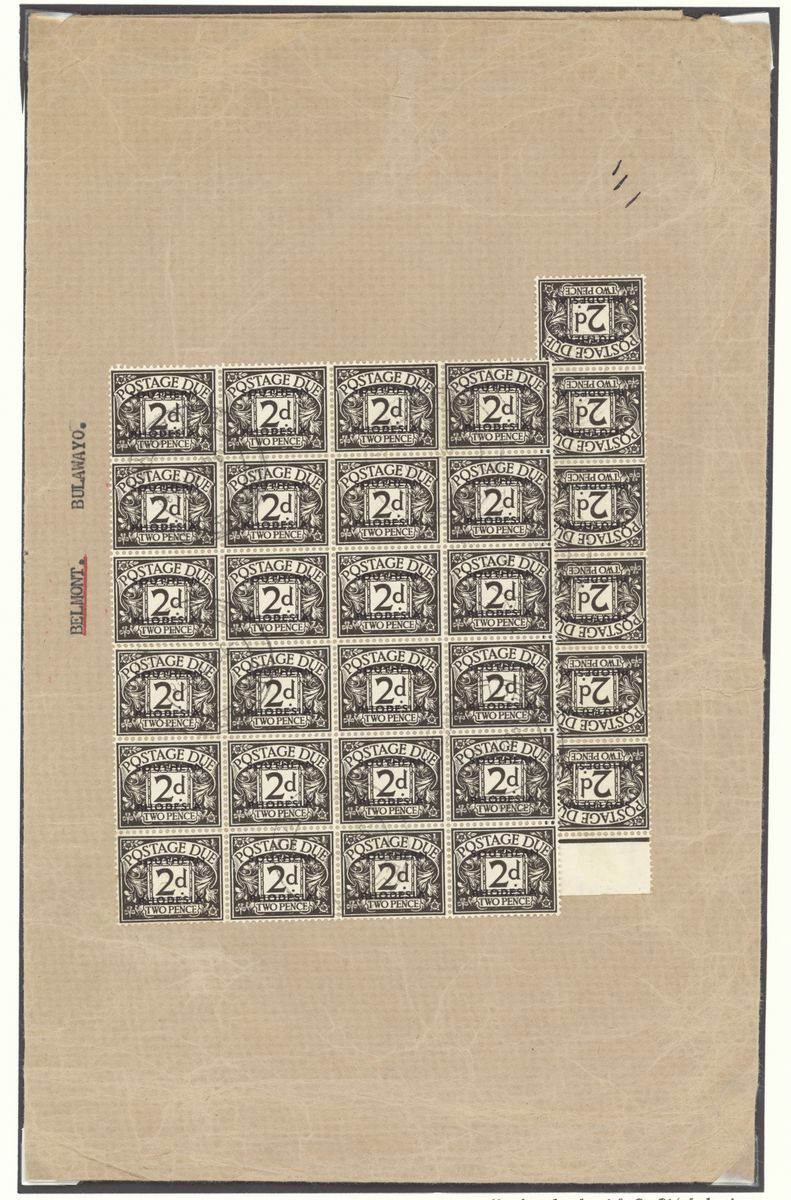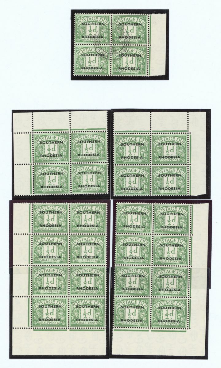 1951 mint and used collection on album pages including multiples of four or larger for each value (except the 4d. grey-green where there is a single example) as large as seventy-two of the ½d. and twenty of the 1d., also a range of covers including a large envelope to Bulawayo taxed 5/- and with 2d. agate (30) applied, also philatelic 'On Postal Service' envelope with one of each value applied (including 4d. grey-green) each tied by