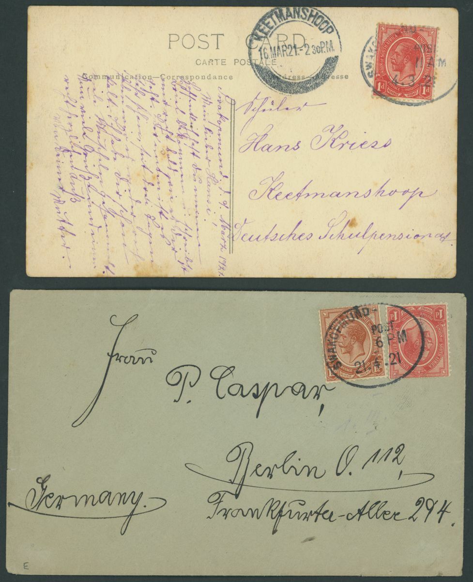 Swakopmund: 1916-23 a small collection of envelopes and cards (13) including 1916 (9 November) "