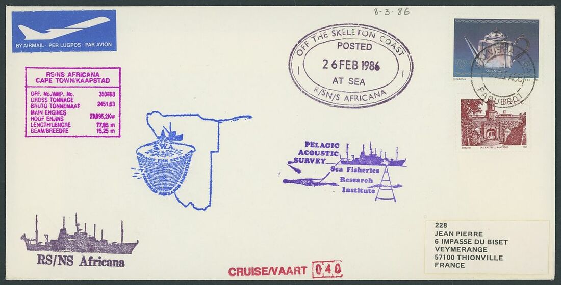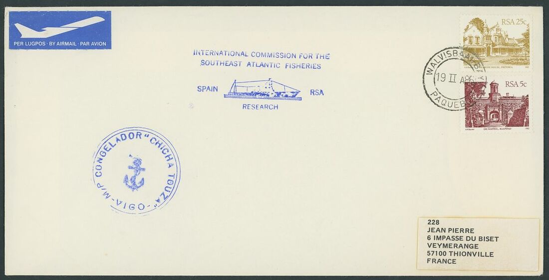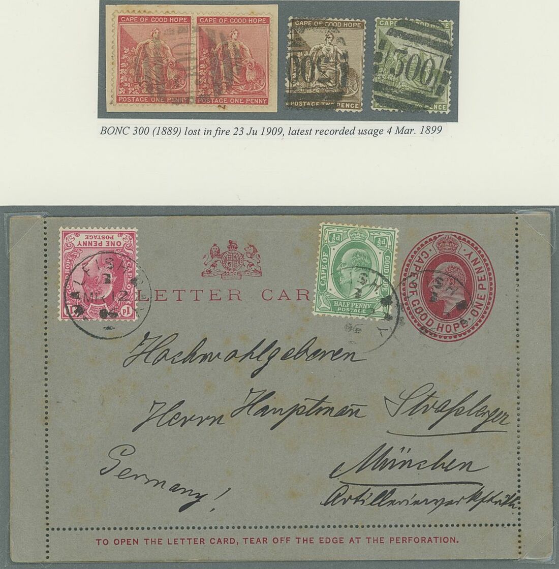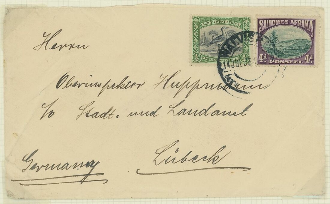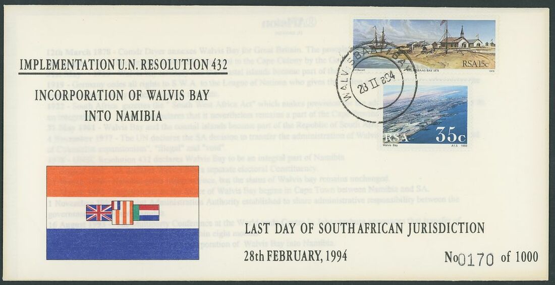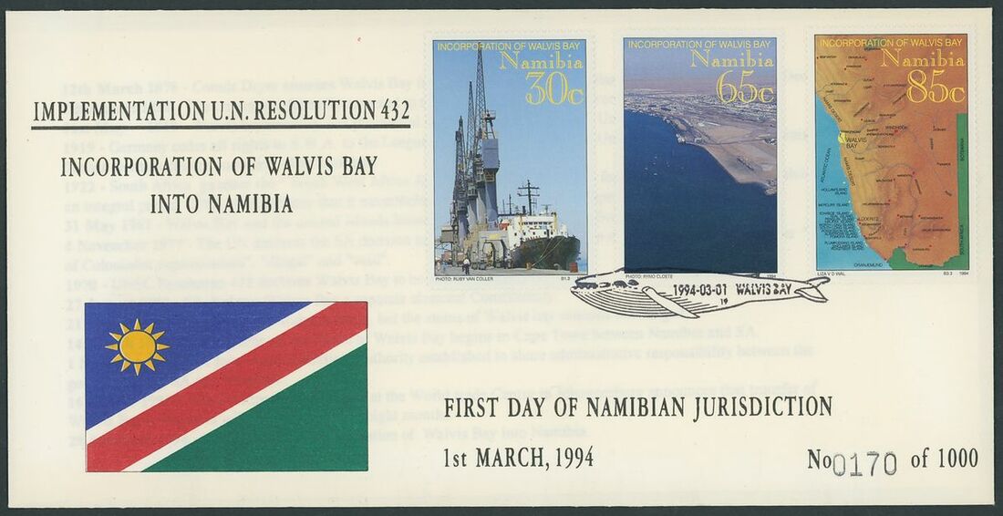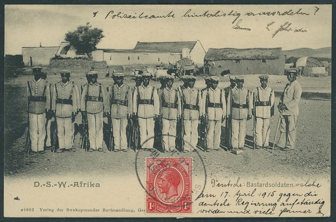 Walvis Bay: A collection on stock and exhibition pages including cards (2) and pieces (2) showing "Walfish Bay" dated manuscript, singles and multiples of Cape off cover (10) with numeral cancel including strip of three with Putz. B3a and Orange River Colony 3d. cancelled by unrecorded double ring in violet/blue, covers and cards (c.40) including 1906 (12 March) Cape 1d. letter card to Munich uprated with ½d. and 1d. with three Putz. B3a cancels and same cancel on two 1d. Cape cards, various examples of the double ring with Maltese Cross cancels and later covers through to 2004. Mixed condition though an interesting group.