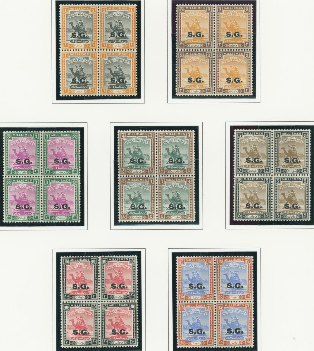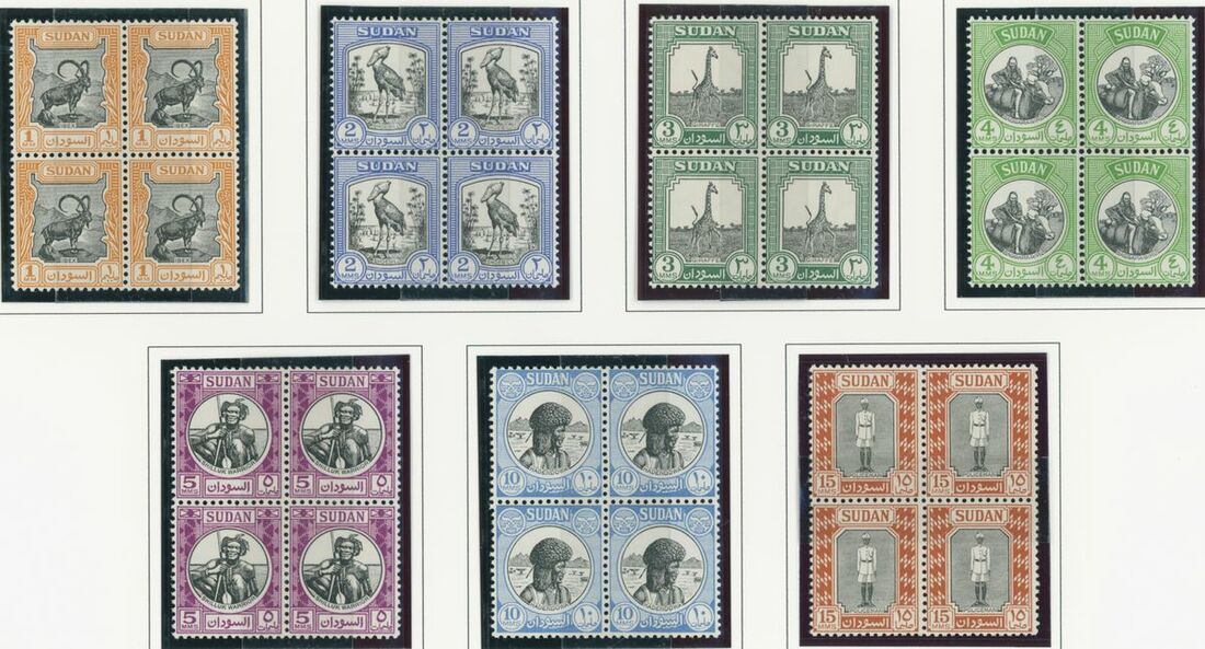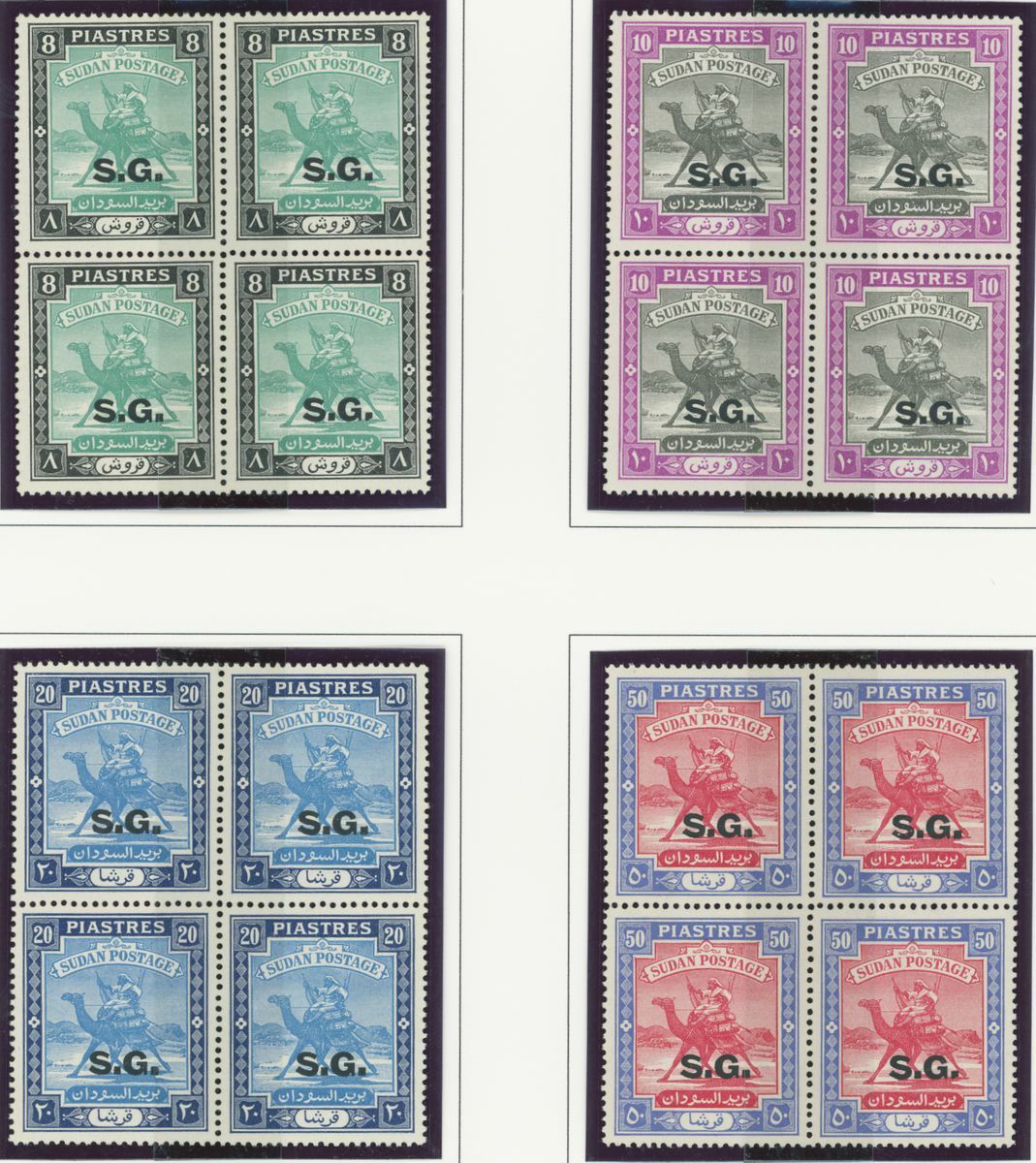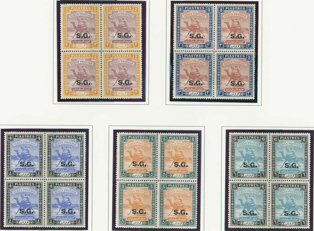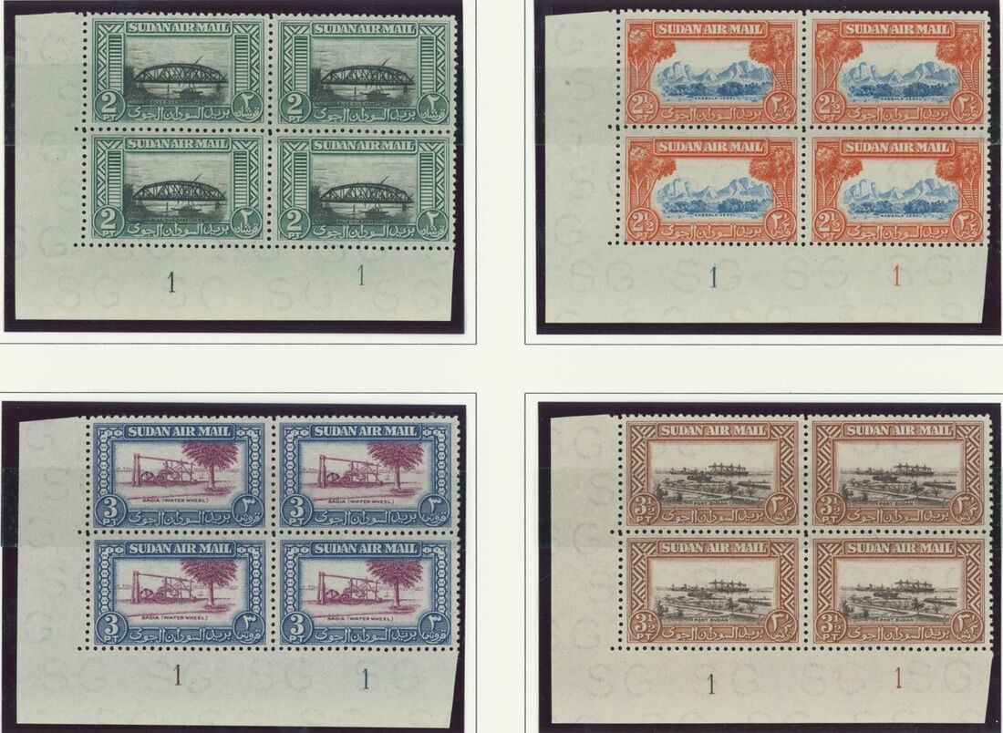 1948-51 mint group of blocks of four on album pages comprising 1948 set of sixteen to 50p., 1950 Airmail set of eight in plate number blocks, 1951-61 set of seventeen to 50p., 1948 Official set of sixteen to 50p., 1950 Airmail Official set of eight to 20p. and 1948 Postage Due set of four to 20p.; fine unmounted mint. S.G. cat. value £1,800+