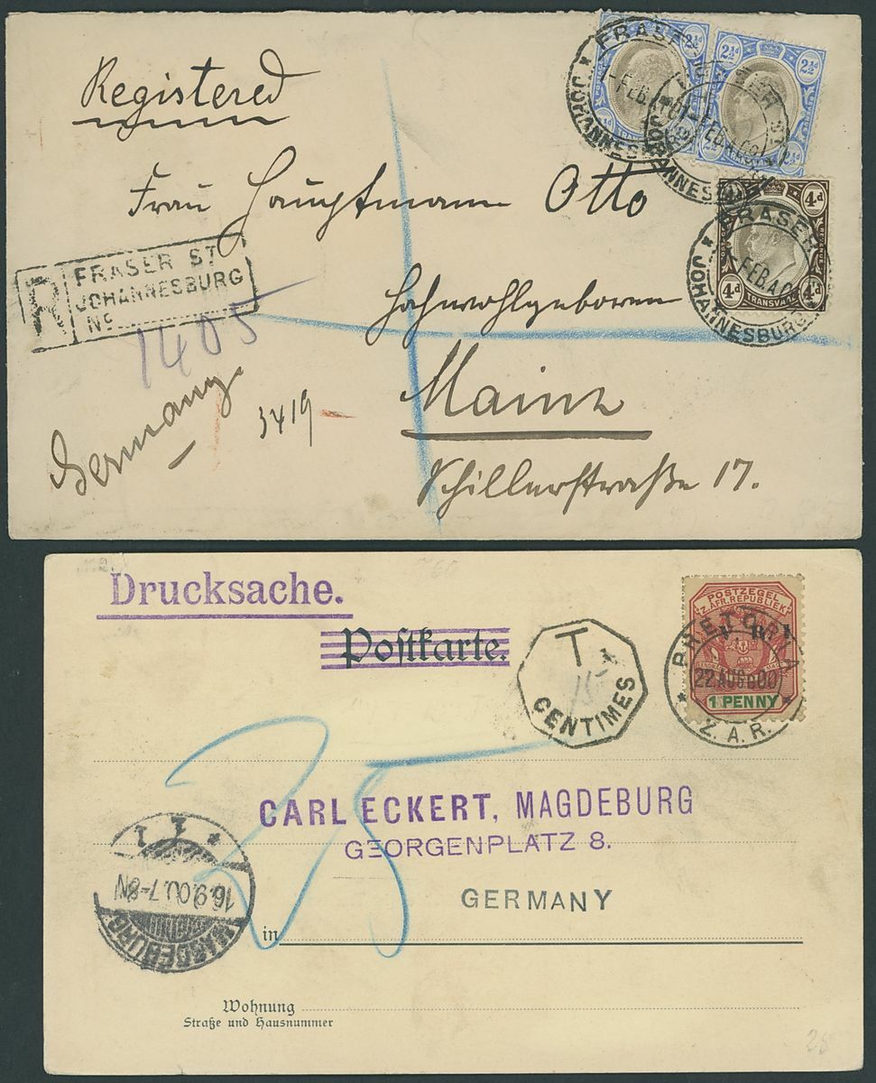 1900 (22 Aug.) Otto Seiffert picture postcard ("Reise uber die Goldfelder in Transvaal") to Germany, bearing 1d. tied by Pretoria c.d.s. and showing octagonal-framed
