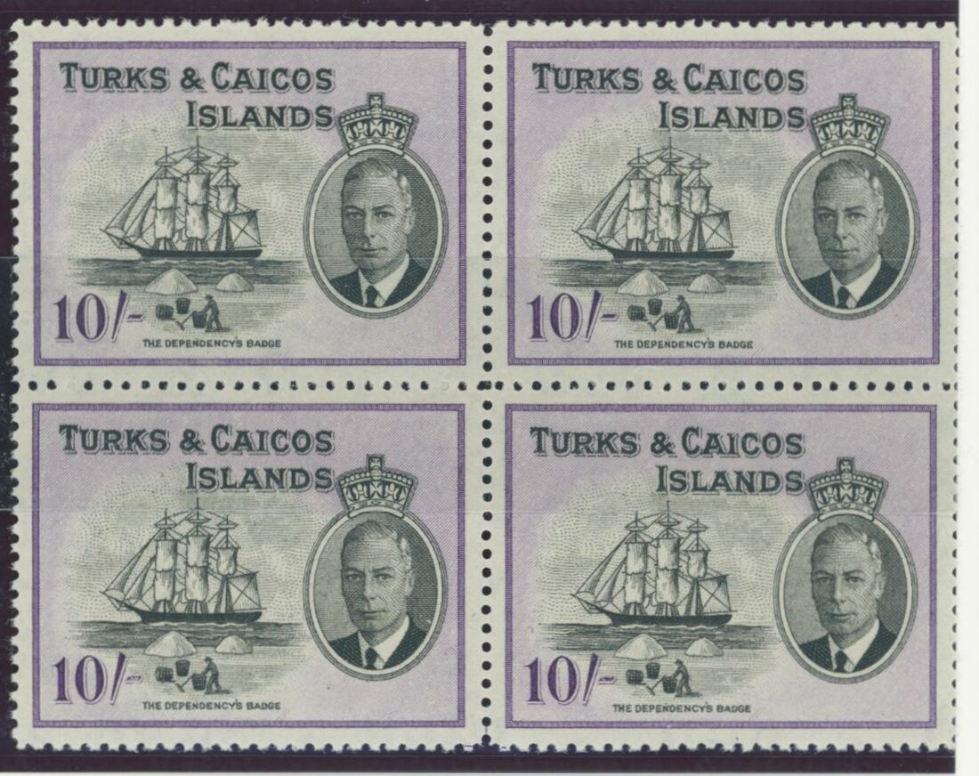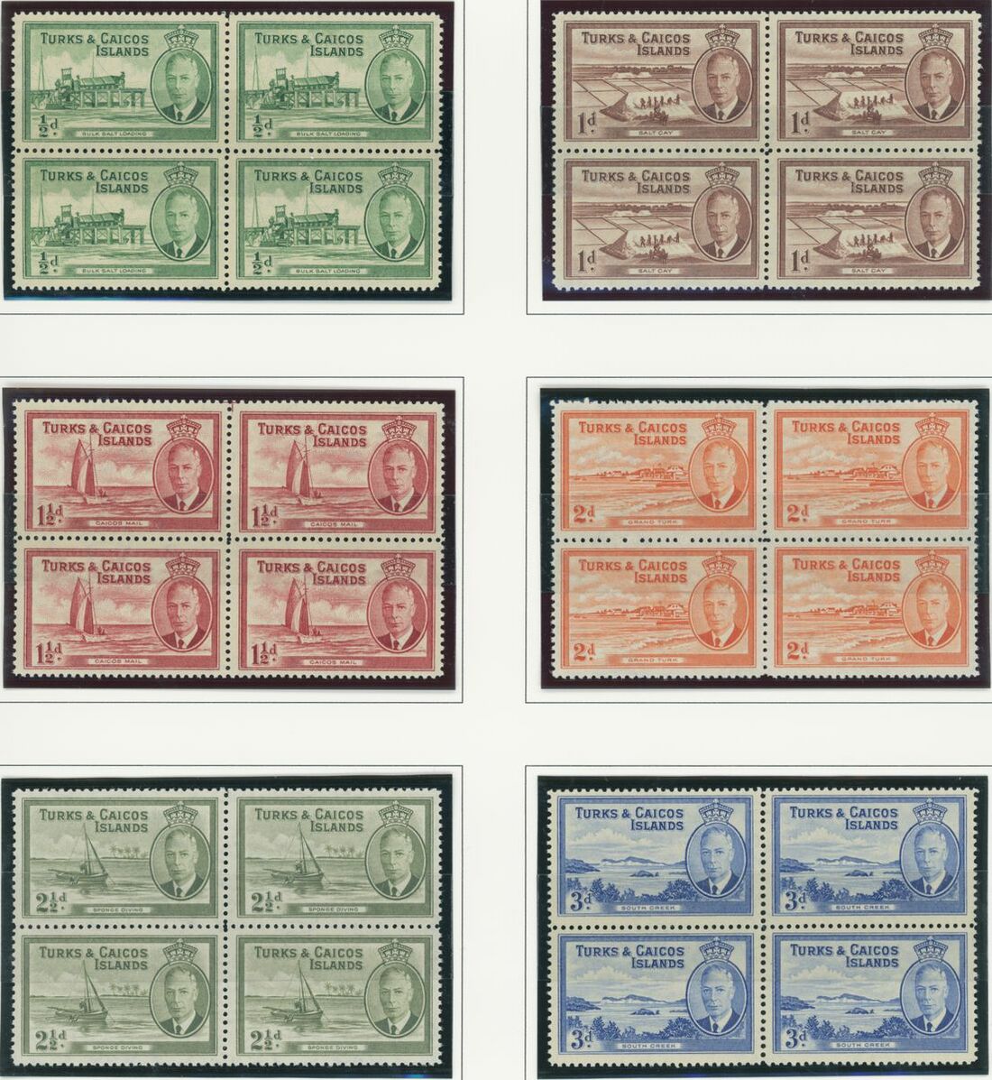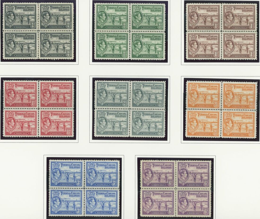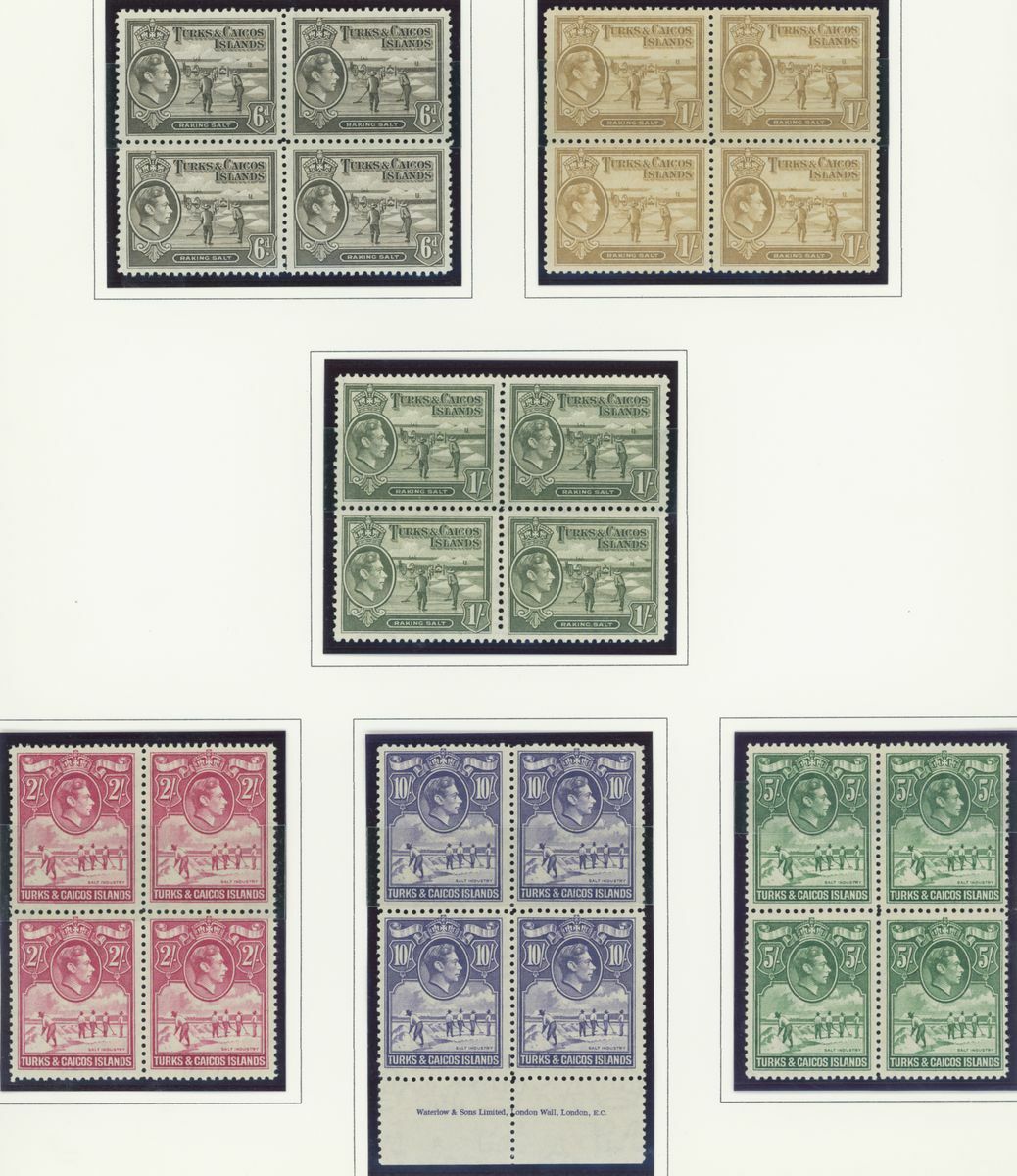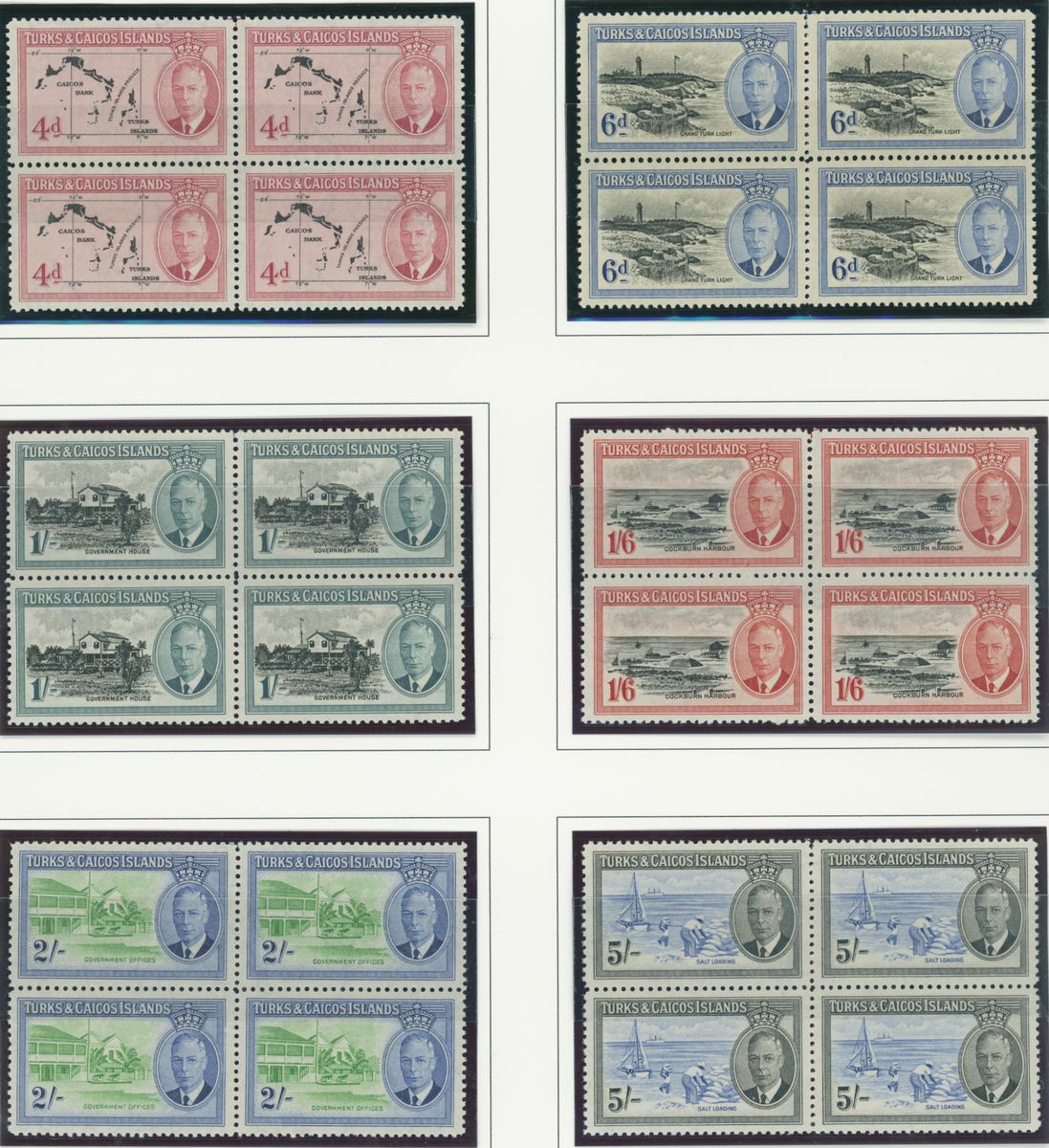 1938-50 mint group of blocks of four comprising 18938-45 set of fourteen to 10/- and 1950 set of thirteen to 10/-; fine unmounted mint. S.G. cat value £860