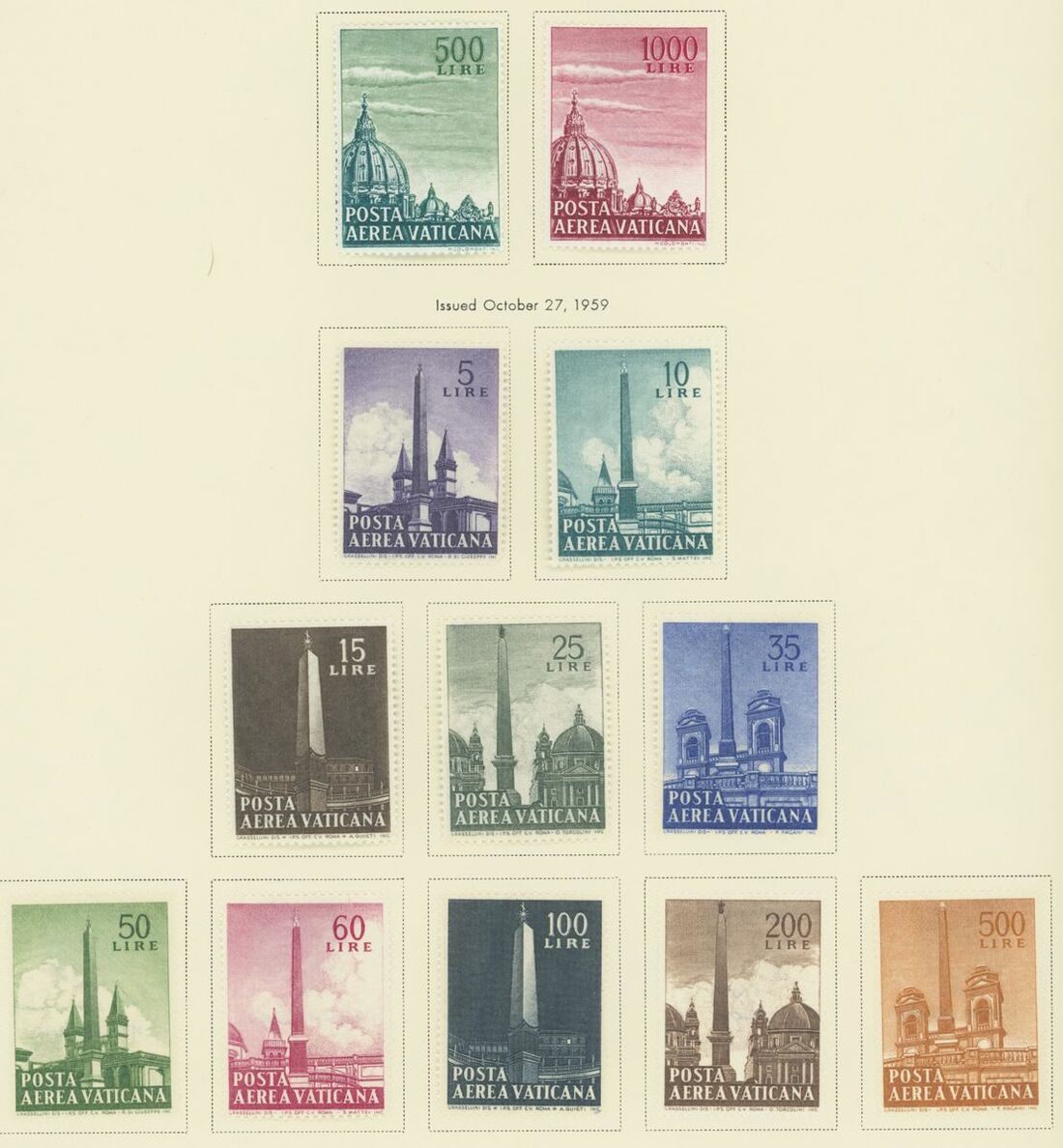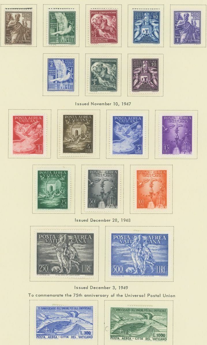 1938-58 Air Mail collection (35) on pages, including 1948 Tobias, 1949 U.P.U., 1951 Gratian, 153 50L. red-brown and deep brown, 1000L. blue and deep blue, etc., original gum; fine