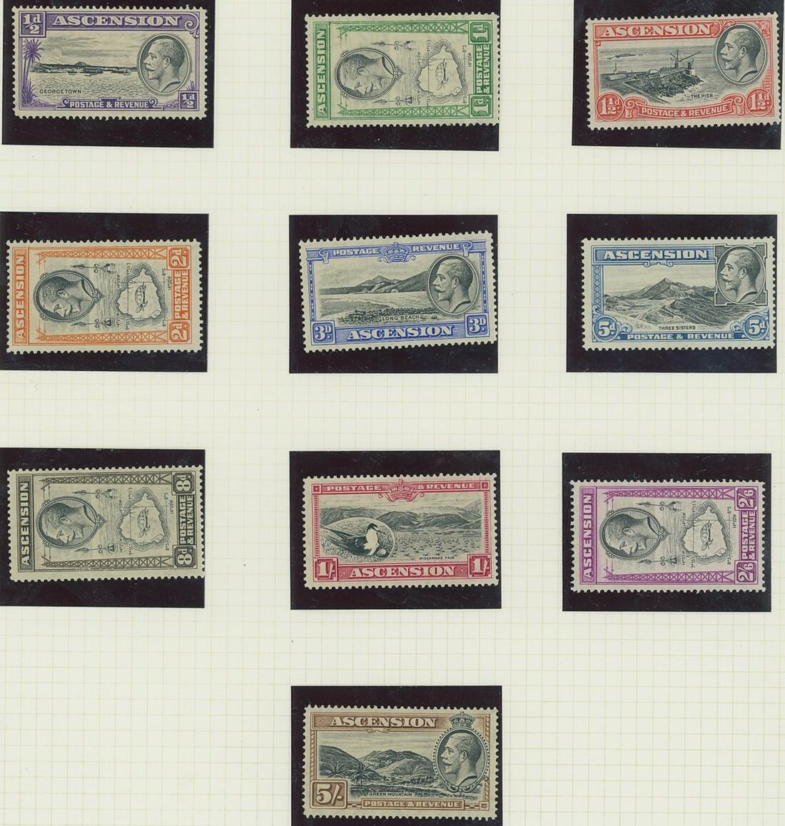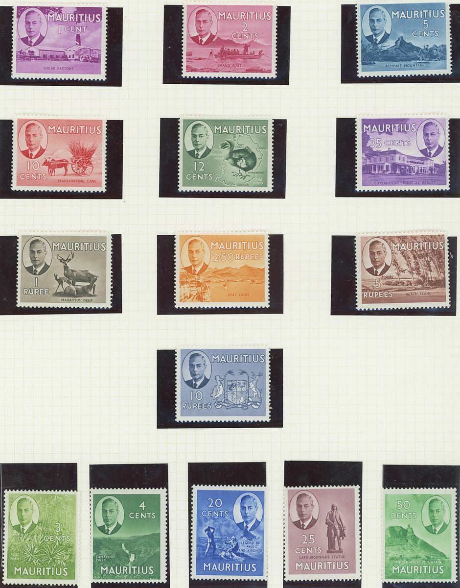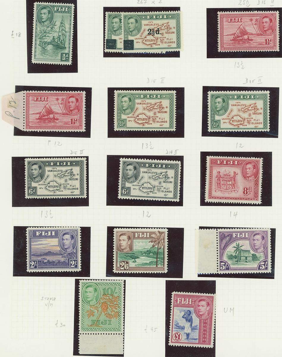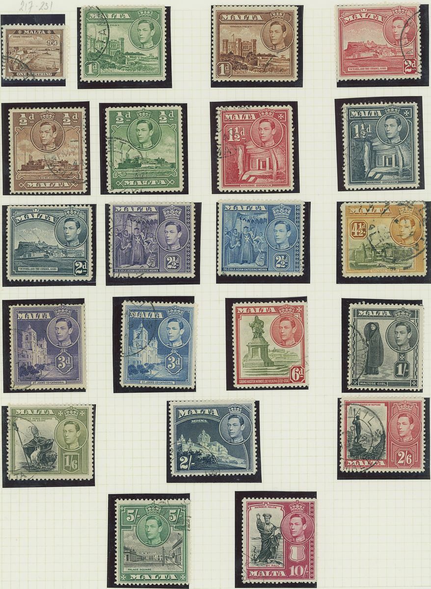 A mainly mint group on album pages with Ascension including 1922 set to 3/-, 1924-33 set to 3/- and 1934 set to 5/-; Fiji with 1938 set with values to £1, Malta 1938 set to 10/- used, Mauritius 1950 set to 10r., Newfoundland Caribou set to 36c., Norfolk Island, GB, etc. S.G. cat value. £1,000+