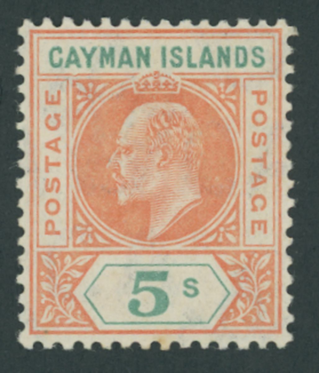 5/- salmon and green, variety dented frame, lightly mounted mint; fine and rare with just nineteen possible examples. S.G. 16a, £5,000