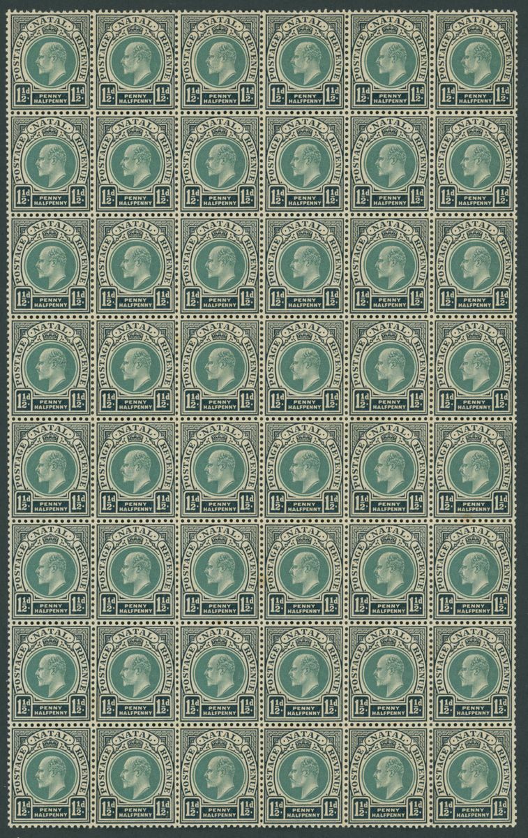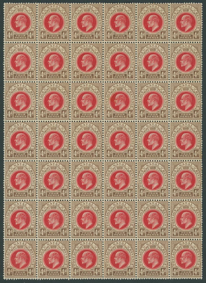 1902-03 CA 1½d. block of forty-eight and 4d. carmine and cinammon block of forty-two; full original gum. S.G. 129 and 133, £780+