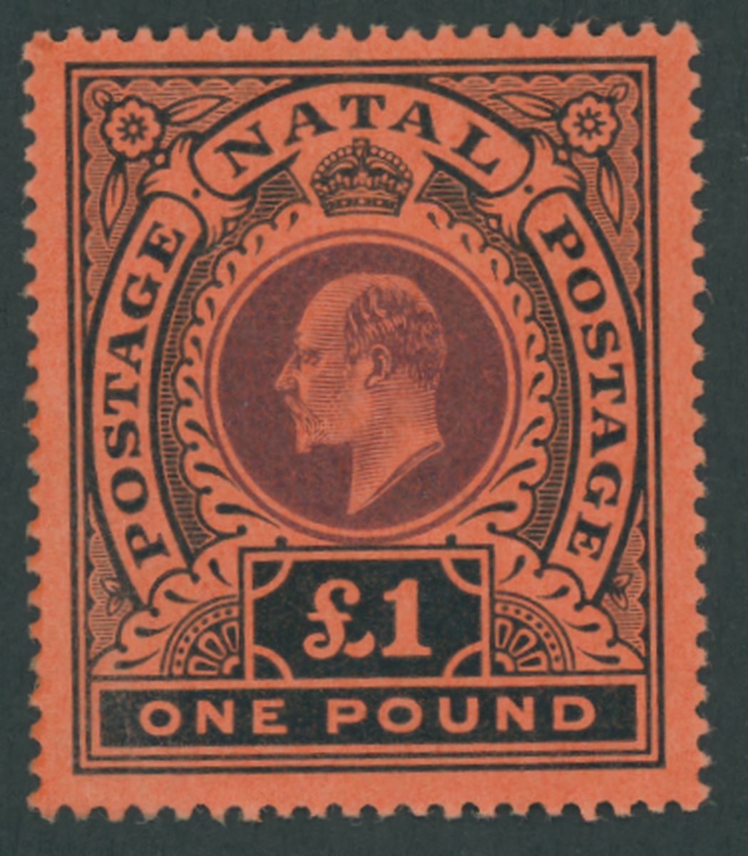 1908-09 MCA £1 purple and black on red, large part original gum. S.G. 171, £425