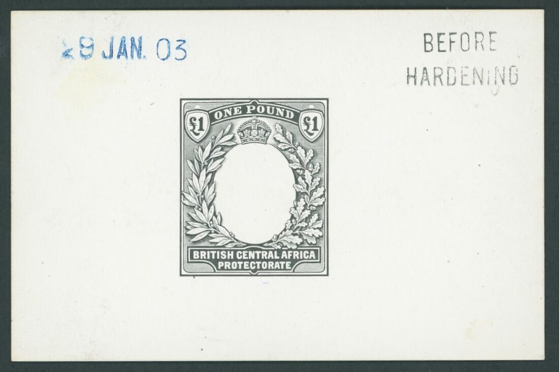 £1 frame only die proof in black on white glazed card (90 x 60mm.), endorsed