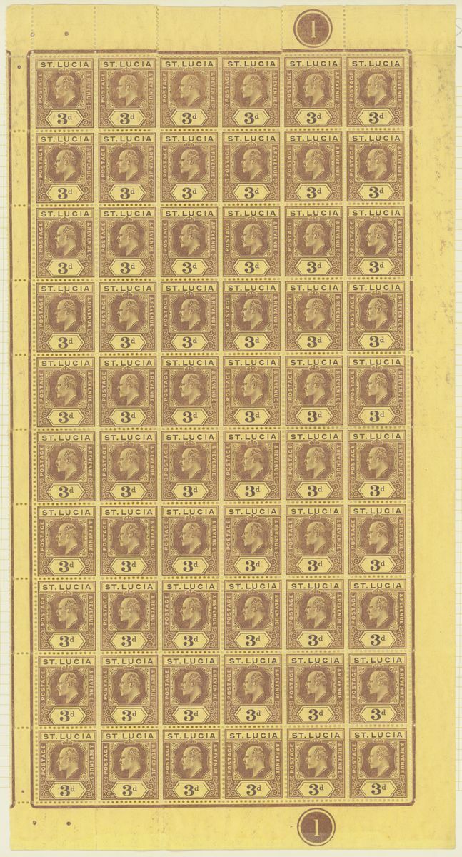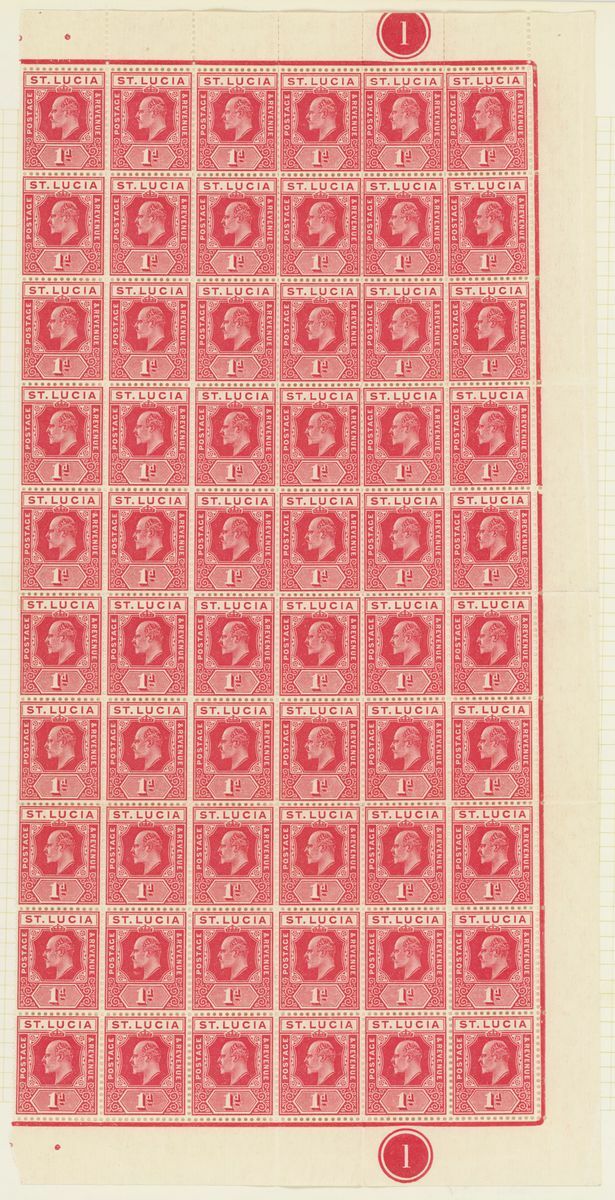 1904-10 MCA 1d. carmine and 3d. purple on yellow, each in a part sheet of sixty from the right of the sheet with plate number '1' at top and foot; full original gum, some minor peripheral soiling otherwise fine. S.G. 67, 71, £555