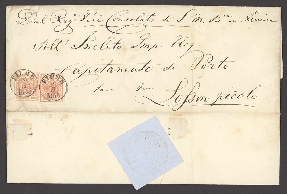 1855 (16 March) entire letter franked with 3kr. (2) from Fiume, by "